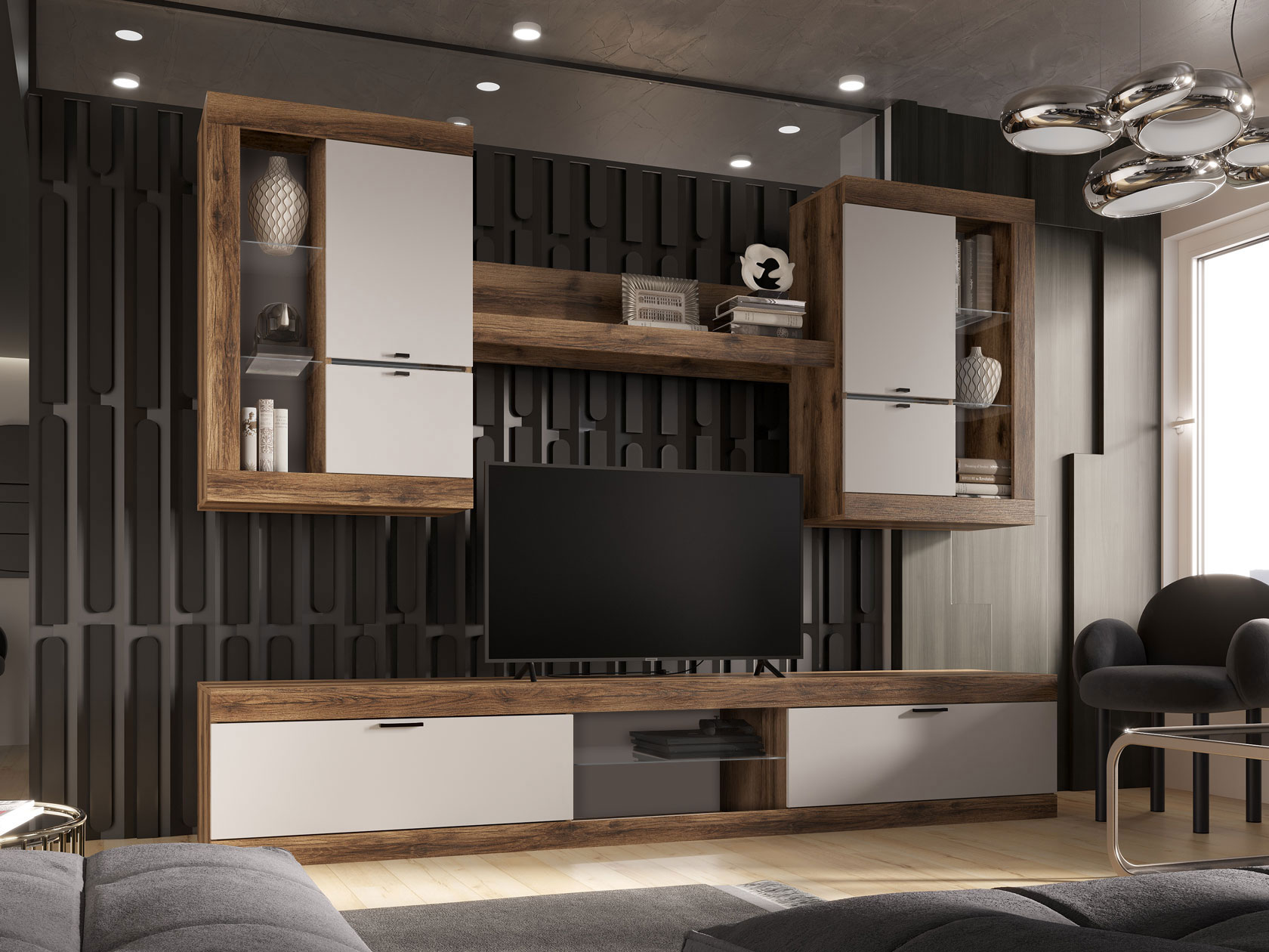 Гостиная Прага Дуб Делано / Белый гладкий Без подсветки