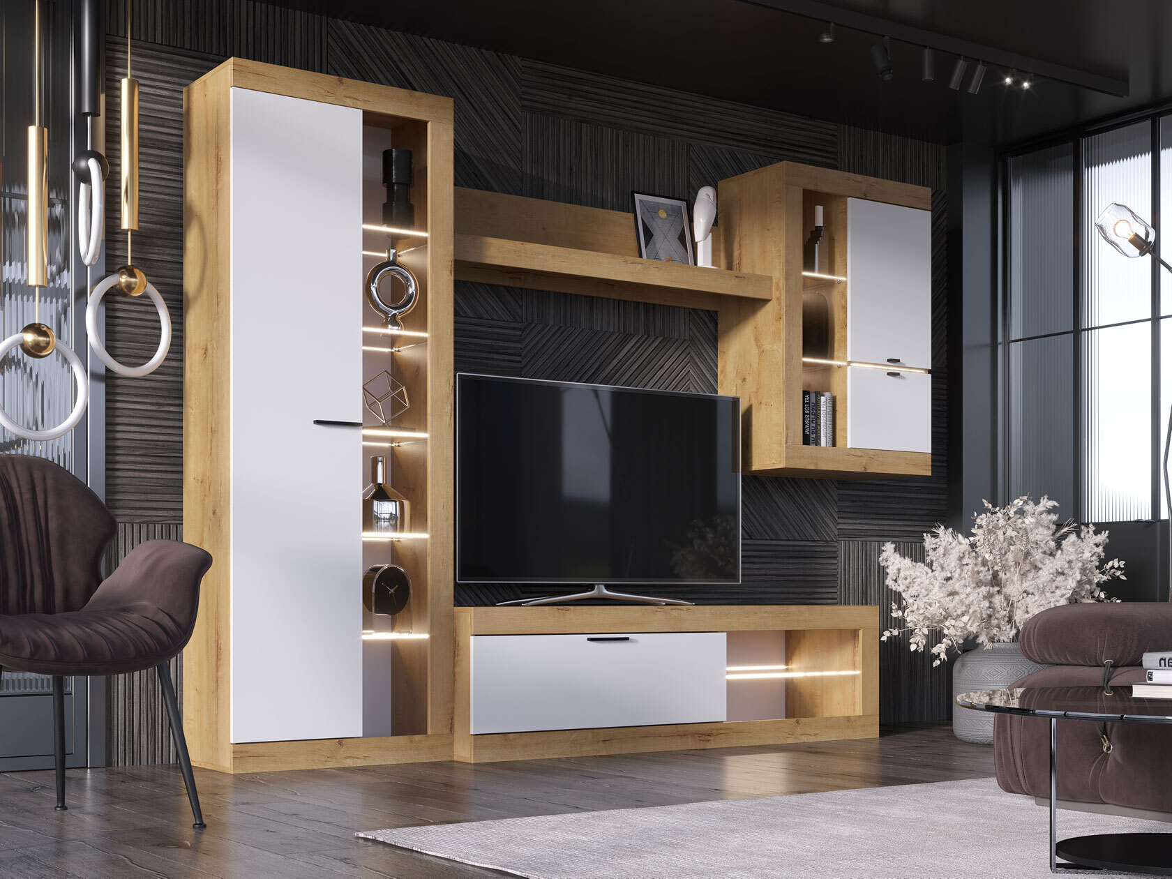 Гостиная Прага Миди подчеркнет индивидуальность пространства и поможет создать просторную систему хранения. Подвесные элементы подарят обстановке визуальную легкость, а напольные — обеспечат место для домашнего кинотеатра, библиотеки или коллекции старинной посуды.