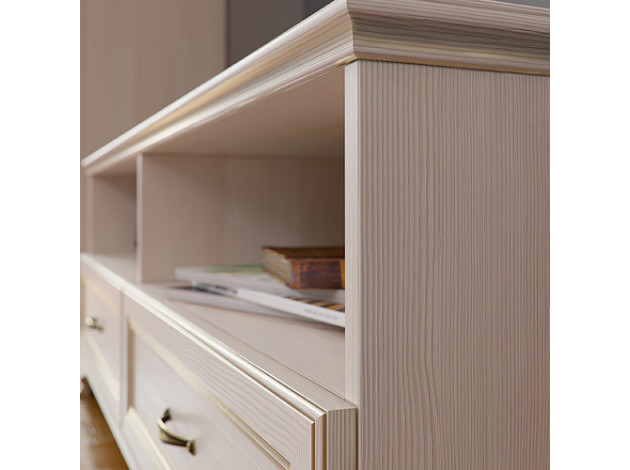 Модульная гостиная Сиена — это очень элегантный набор, который способен оживить и украсить интерьер комнаты. Нежная текстура дерева в сочетании с золотой патиной придают изделиям богатый и роскошный вид. В комплект входят все необходимые предметы меблировки для организации практичного и функционального пространства.