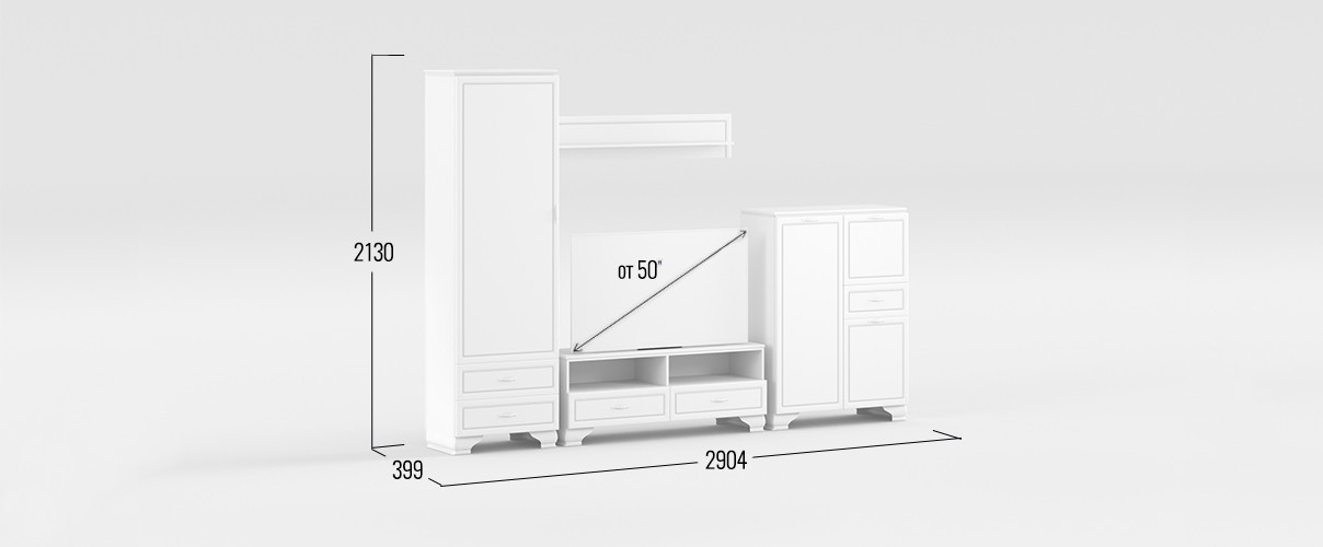 - ТВ-тумба: 51,3 х 130,4 х 38,3 см;