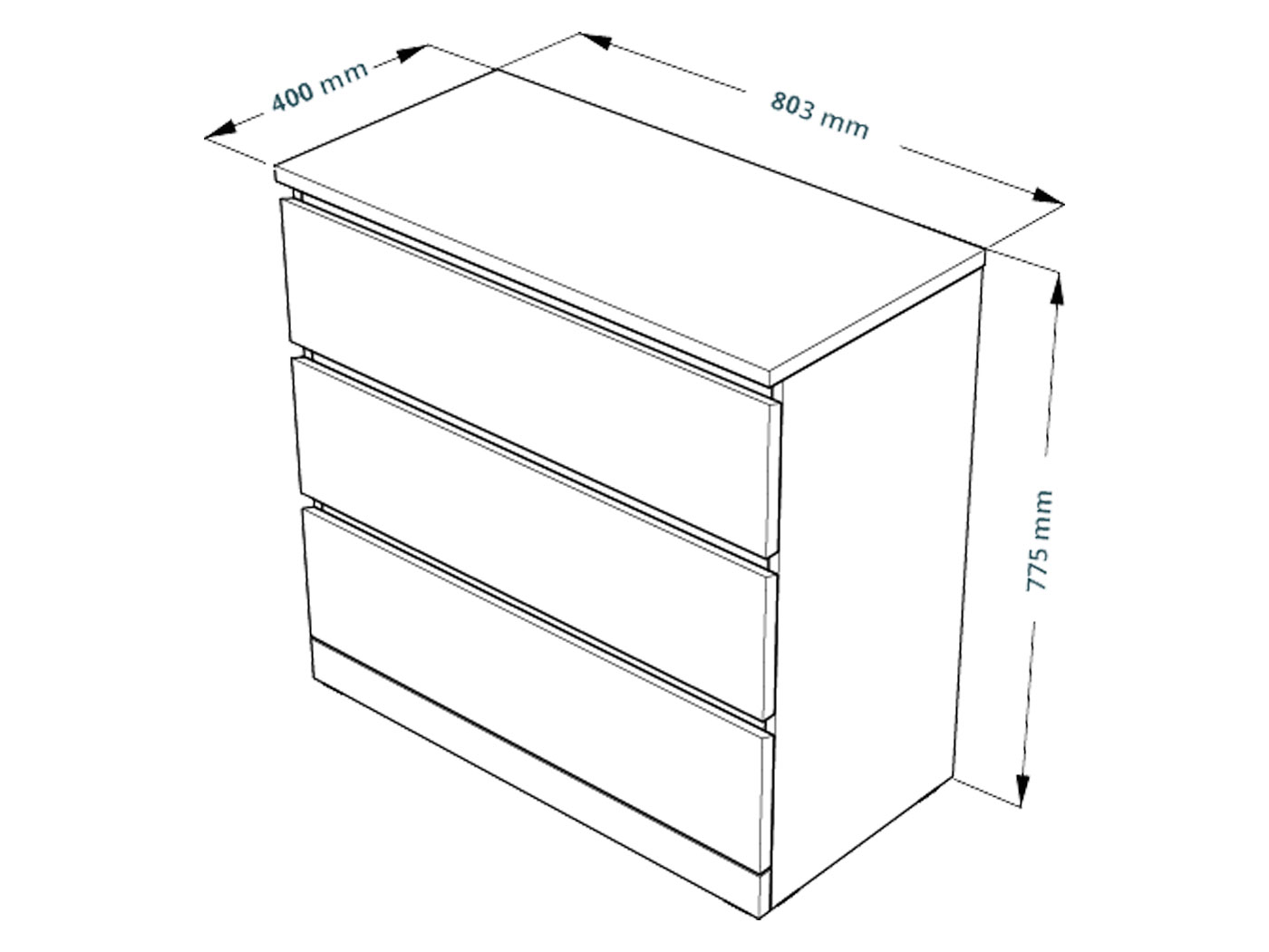 - Комод: 77,5 х 80,3 х 40 см.