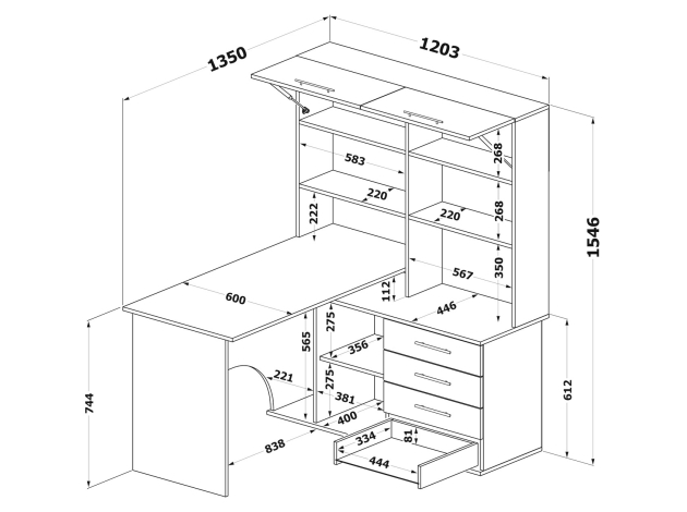 Размер полок в надстройке (ШхГ): 58,3 х 22 см.