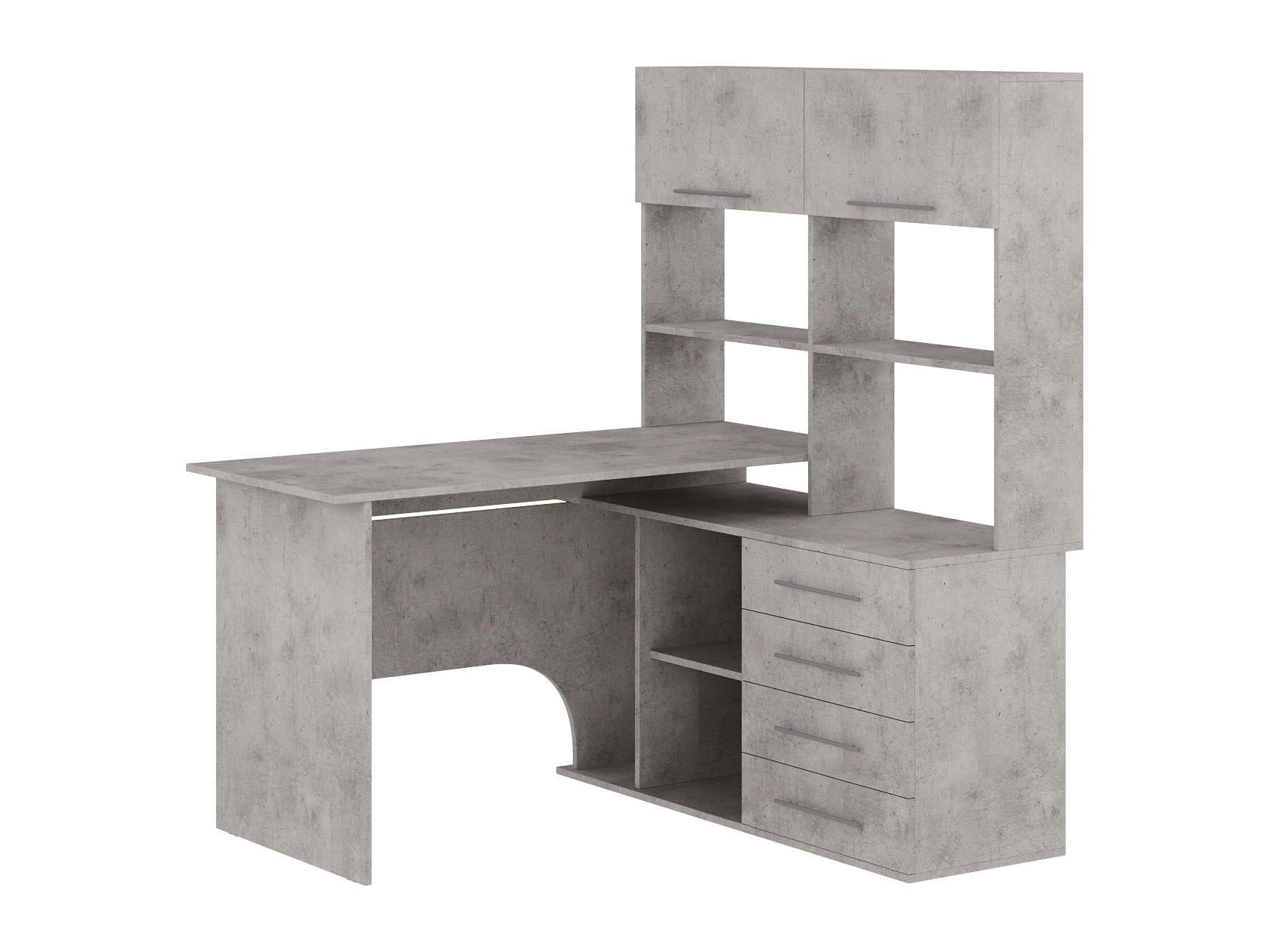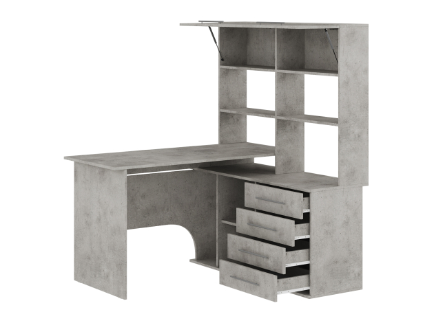 Угловая конструкция с надстройкой и тумбой позволяет оптимально использовать доступное пространство. Стол оснащен всем необходимым для организации удобного рабочего уголка.