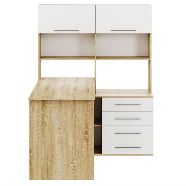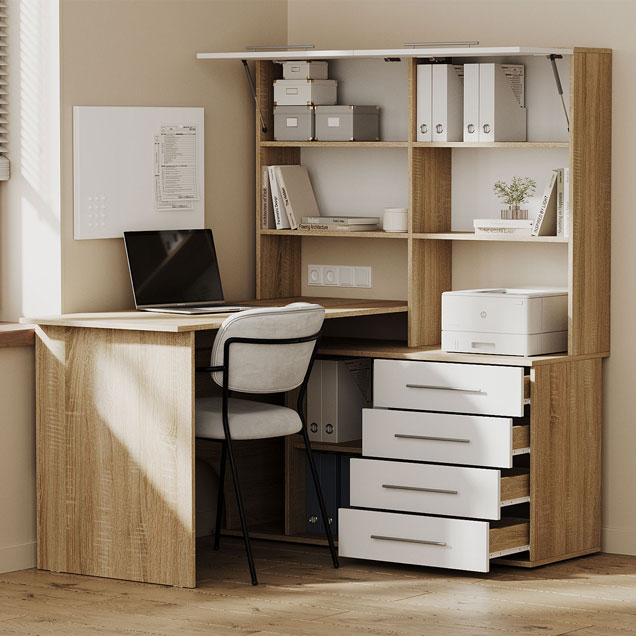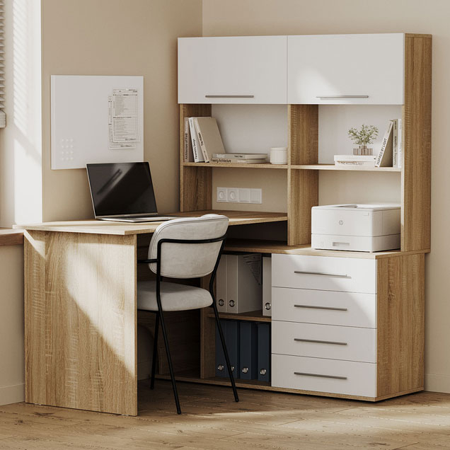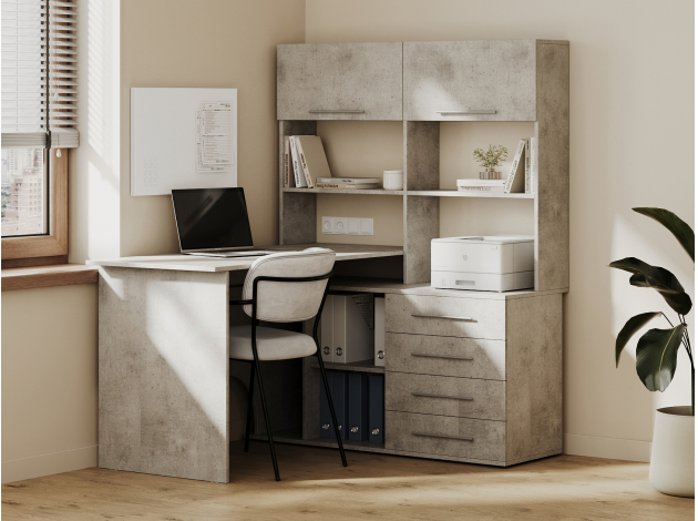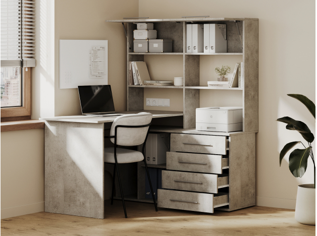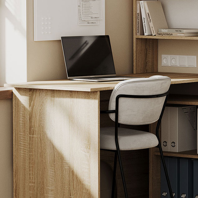 Надстройка может быть с любой стороны от столешницы. Это делает стол одинаково удобным для правшей и для левшей, а также позволяет адаптировать его для разных планировок.