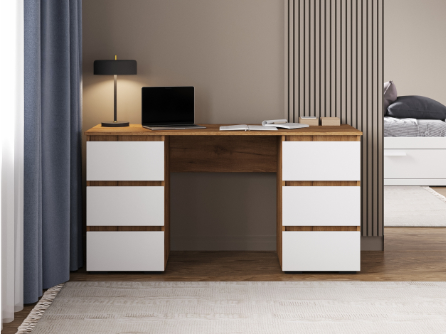 Компьютерный стол Элли сочетает функциональность и лаконичный дизайн без лишних деталей. Под просторной столешницей расположены выдвижные ящики, где удобно хранить канцелярские принадлежности и другие необходимые вещи, что позволяет поддерживать порядок на основной поверхности и обеспечивает быстрый доступ к содержимому.