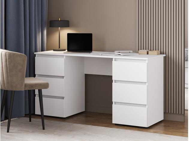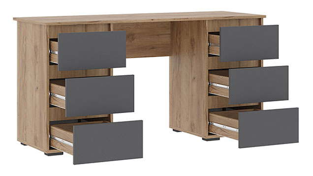 Компьютерный стол Элли сочетает функциональность и лаконичный дизайн без лишних деталей. Под просторной столешницей расположены выдвижные ящики, где удобно хранить канцелярские принадлежности и другие необходимые вещи, что позволяет поддерживать порядок на основной поверхности и обеспечивает быстрый доступ к содержимому.