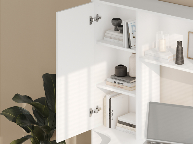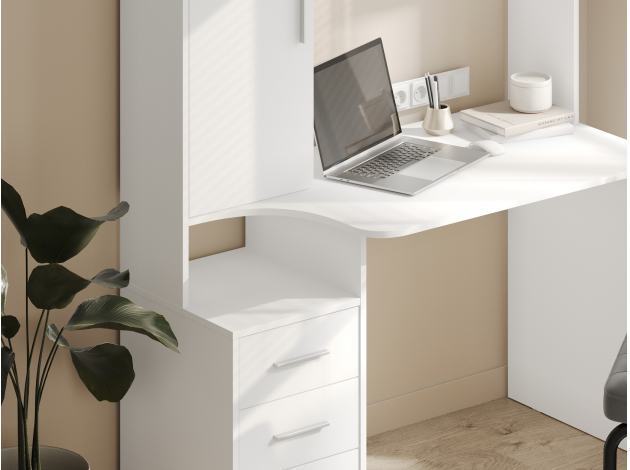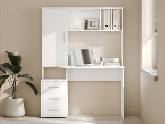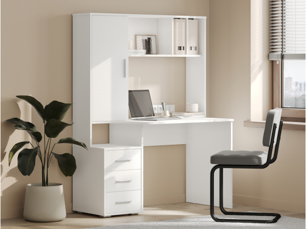 Компьютерный стол Дуглас незаменим для обустройства домашнего кабинета. Он сочетает в себе лаконичный дизайн и функциональность, идущую в ногу со временем. В конструкции стола предусмотрена высокая надстройка с открытыми полками и закрытым стеллажом с двумя просторными полками, благодаря которым все нужные бумаги, книги и канцелярские принадлежности всегда будут под рукой. Под столешницей расположена тумба с открытой нишей и тремя выдвижными ящиками на шариковых направляющих.