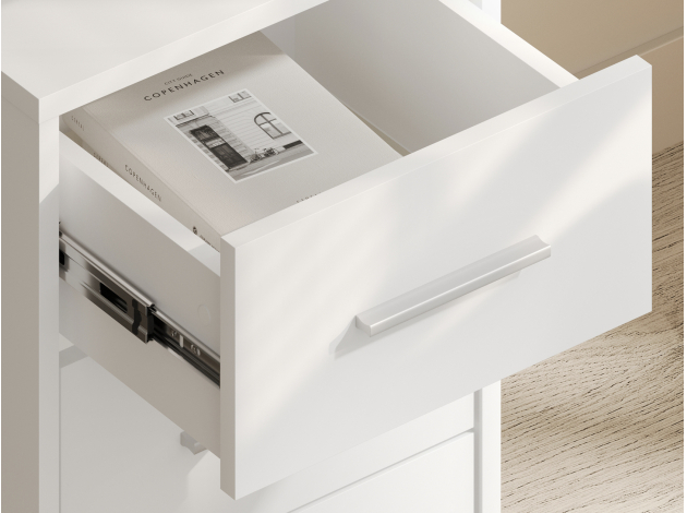 - шариковые направляющие полного выдвижения — плавное выдвижение ящиков, долговечность конструкции.