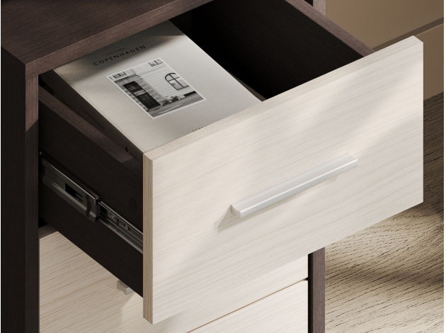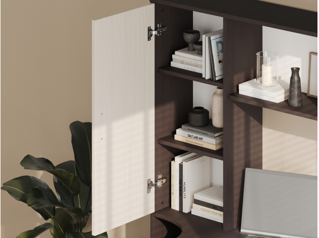 Компьютерный стол Дуглас незаменим для обустройства домашнего кабинета. Он сочетает в себе лаконичный дизайн и функциональность, идущую в ногу со временем. В конструкции стола предусмотрена высокая надстройка с открытыми полками и закрытым стеллажом с двумя просторными полками, благодаря которым все нужные бумаги, книги и канцелярские принадлежности всегда будут под рукой. Под столешницей расположена тумба с открытой нишей и тремя выдвижными ящиками на шариковых направляющих.