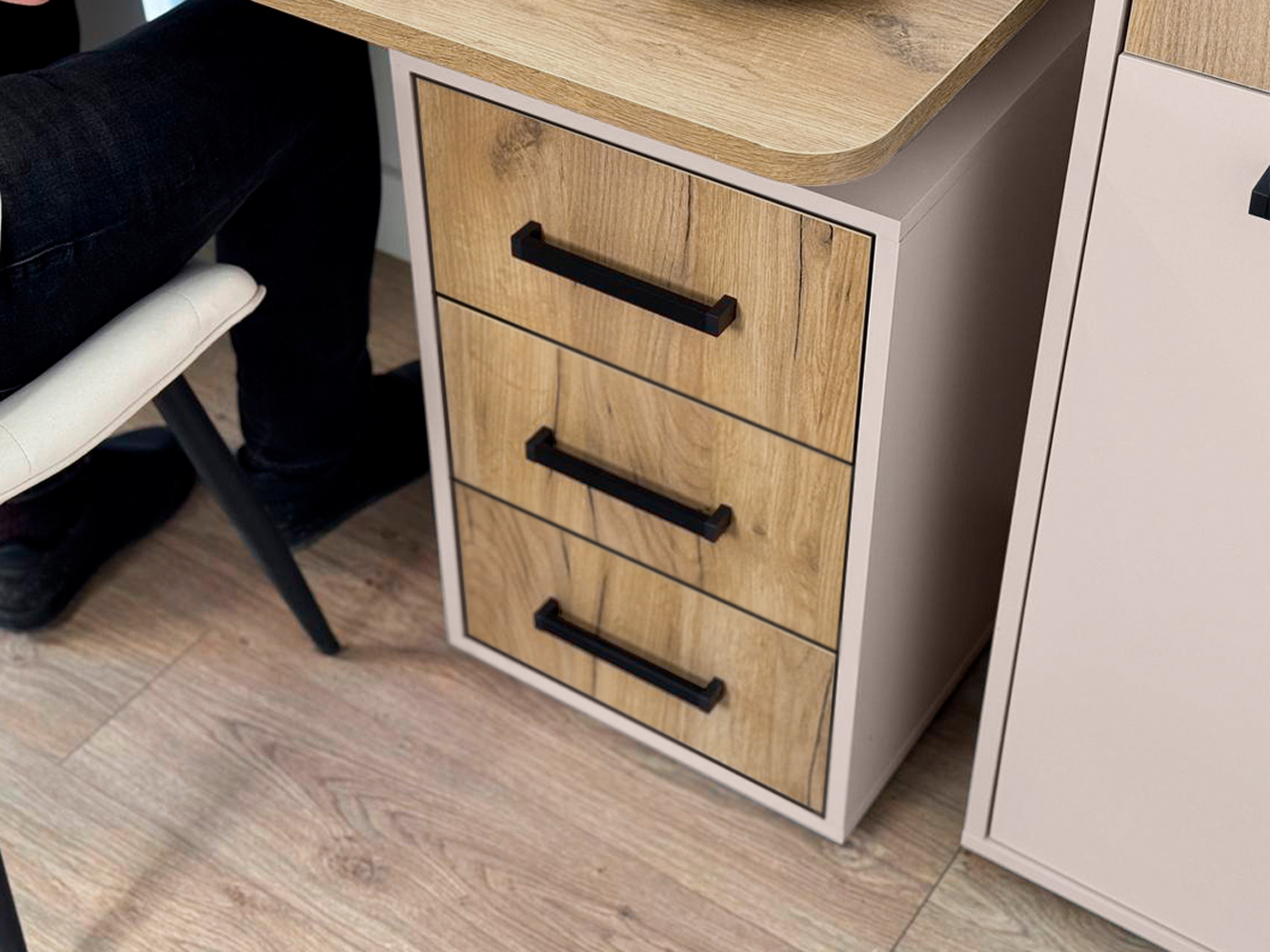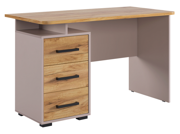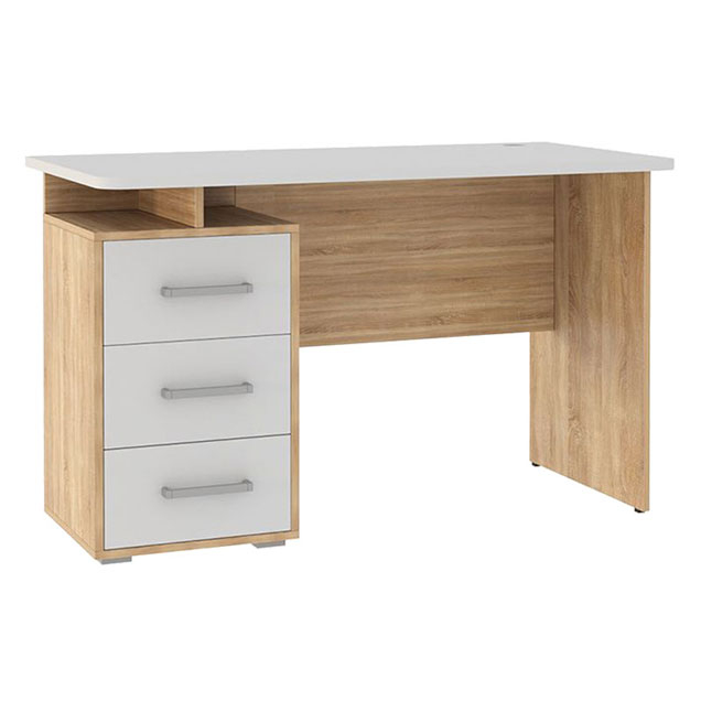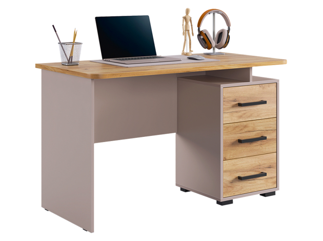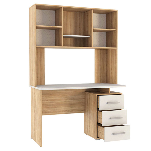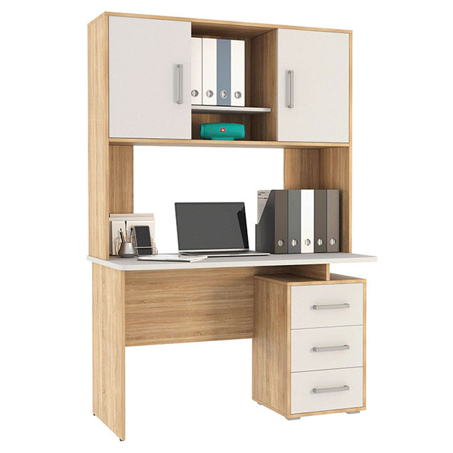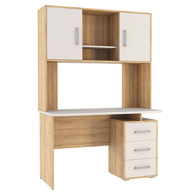 Компьютерный стол Лайт-2 с надстройкой поможет организовать комфортное рабочее пространство дома или в офисе. Просторная столешница подходит для работы и учебы, а надстройка с распашными шкафчиками и открытой нишей обеспечит удобное хранение книг, документов и аксессуаров. Напольная тумба с тремя выдвижными ящиками позволит держать под рукой всё необходимое. Лаконичный дизайн с сочетанием светлых фасадов и фактуры дерева гармонично смотрится в современном интерьере.