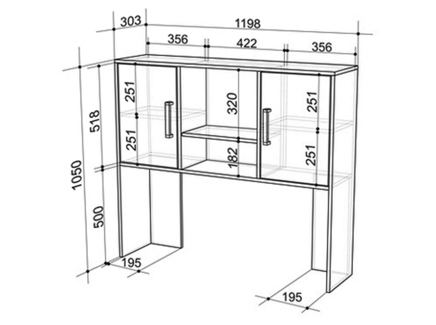 - Размеры надстройки (ВxШxГ): 105 x 119,8 x 30,3 см.