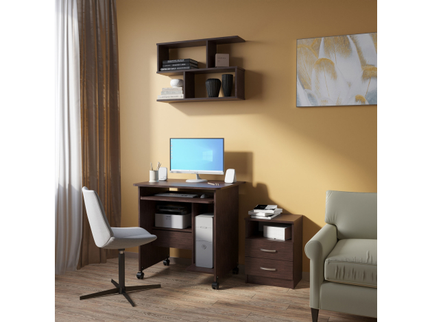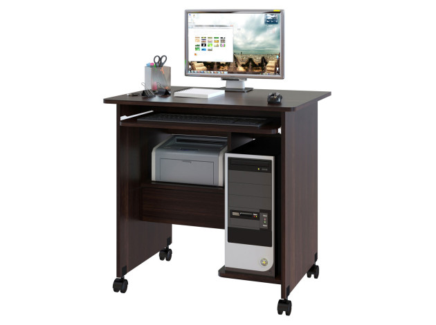 Компьютерный стол Ристер-1 — это удобный функционал и минимум декора. Компактная модель идеально подойдет для комнаты с ограниченным пространством. Полки под столешницей позволяют расположить клавиатуру, системный блок и принтер. В небольшом ящике удобно хранить канцелярские мелочи. Маневренные колесики помогают быстро переместить стол, если это необходимо.