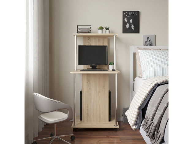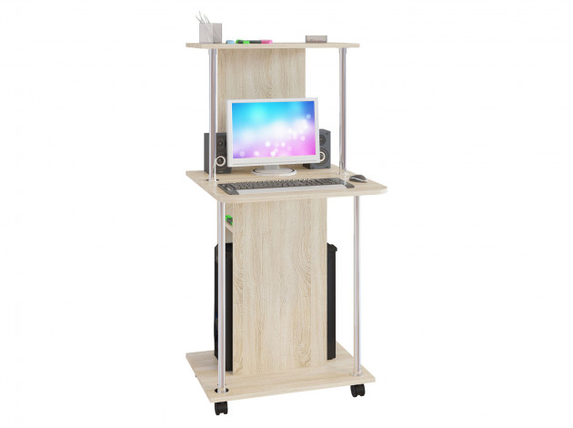 • Оригинальный компьютерный стол Фарно позволит работать как с ноутбуком, так и за стационарным монитором. С обратной стороны центральной стойки предусмотрено место для системного блока. Сверху расположена удобная полка для небольшого принтера.
