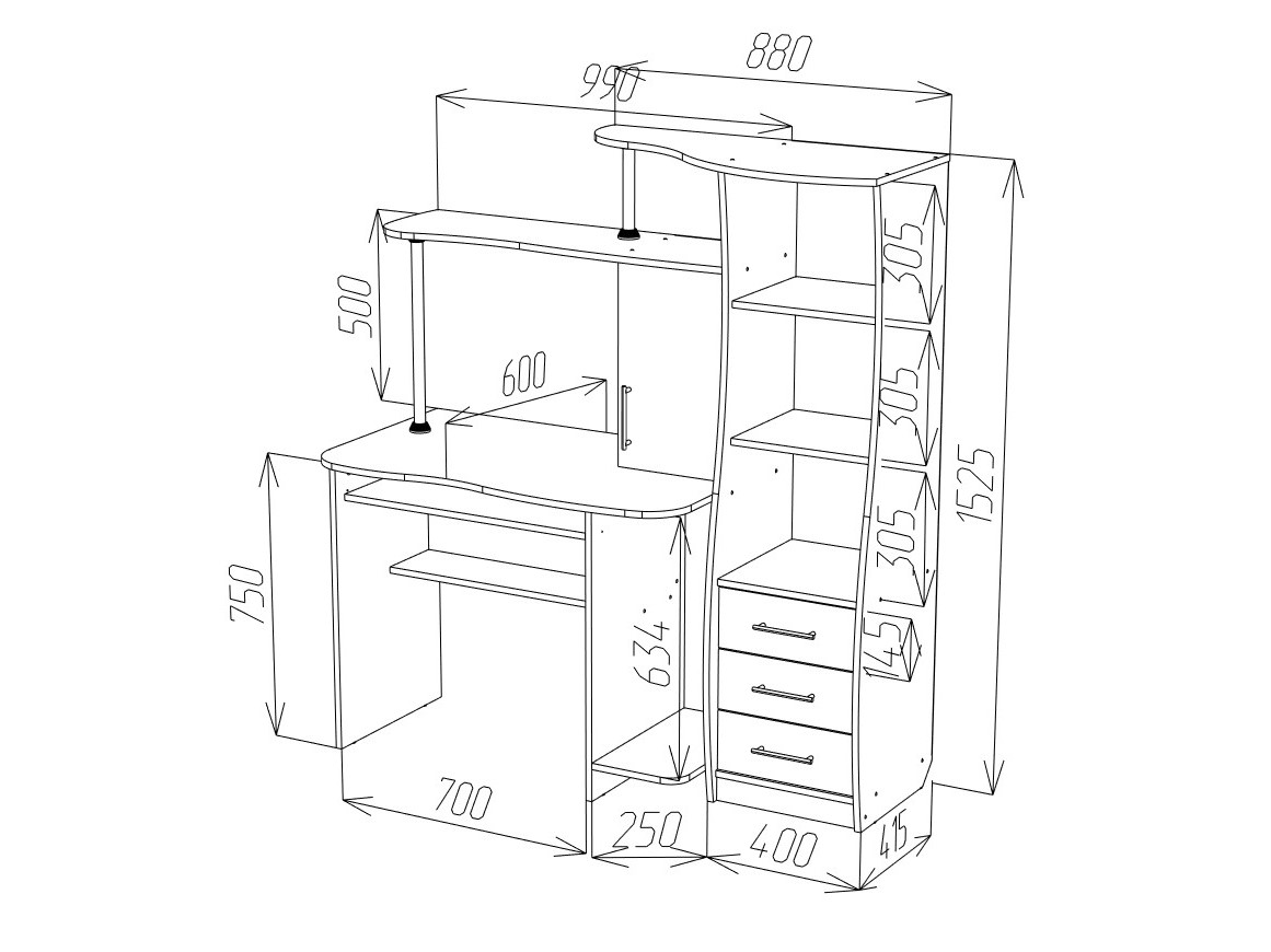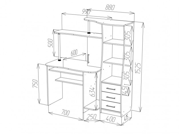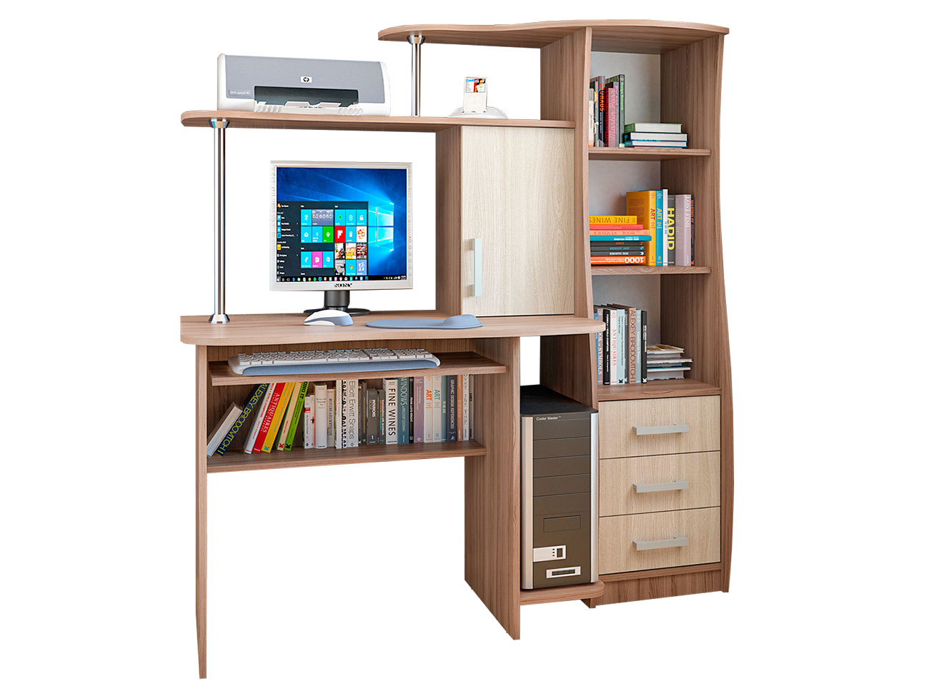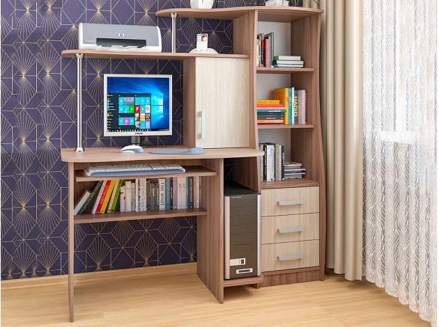 Компьютерный стол Патио — это не только удобная столешница с полками для клавиатуры, папок и оргтехники, но и полноценная система хранения. Правая сторона модели оснащена вместительными нишами и ящиками, в которых найдется место для книг и любых рабочих или учебных принадлежностей.