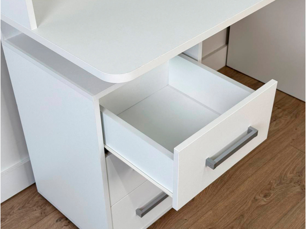 Красивый, удобный, качественный стол. Доставили быстро и аккуратно, все было хорошо упаковано. Это такой мужской конструктор - собери сам) Собрали сами за полдня вместе с 2-мя шкафами. Ящики открываются мягко, нравится, что углы закругленные. Никаких царапин или сколов, все отлично. Рекомендую.