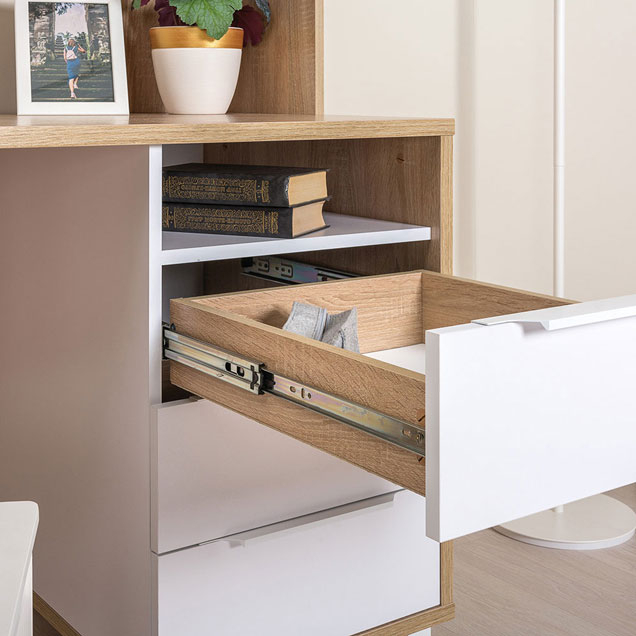 Компьютерный стол Комфорт 12.95 — идеальный вариант для тех, кто ценит порядок на рабочем месте. Вместительная система хранения поможет разместить под рукой максимальное количество вещей. Лаконичный дизайн, простые формы и отсутствие лишних деталей позволяют легко вписать конструкцию в любой интерьер.