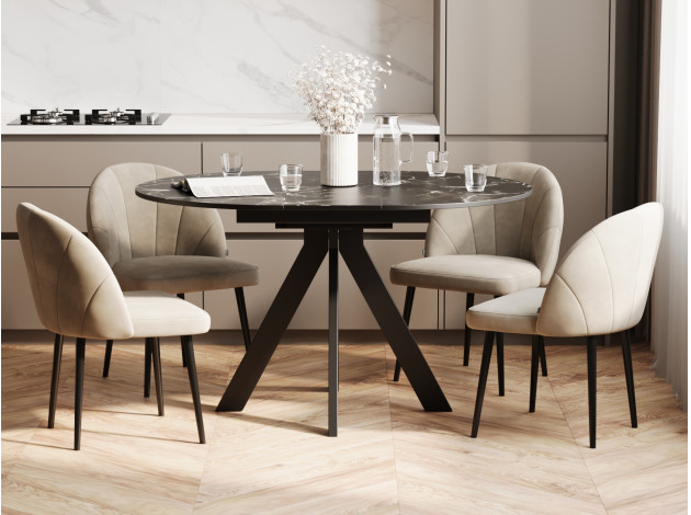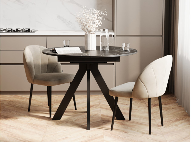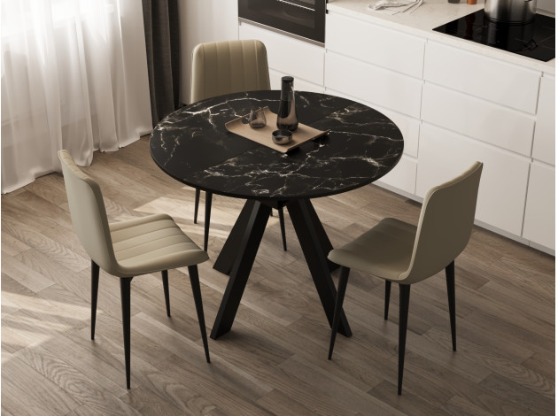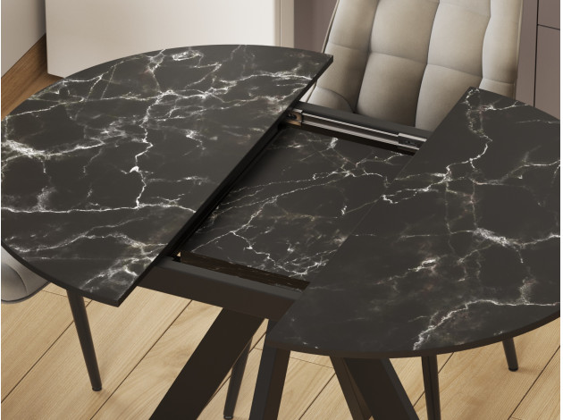 Кухонный стол Амадора Черный мрамор / Черный матовый, металл Раздвижной