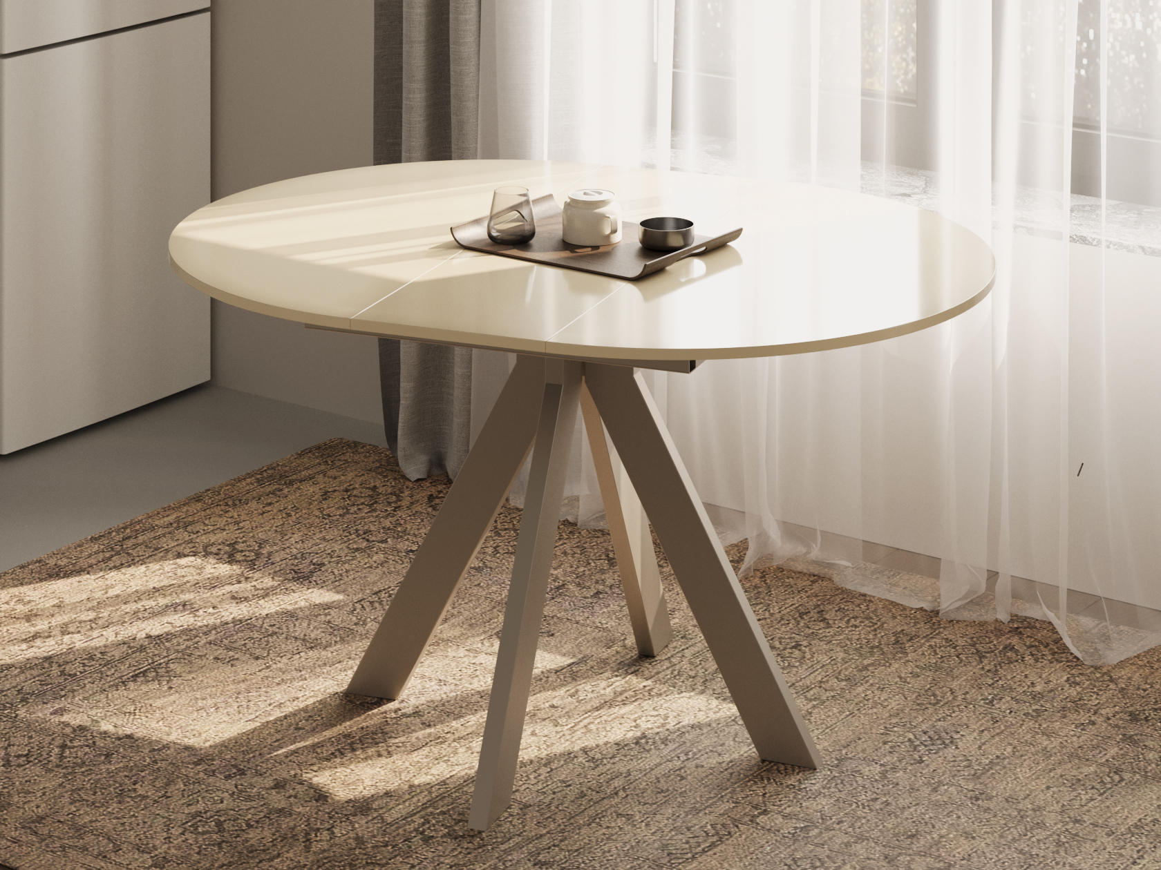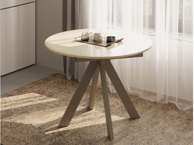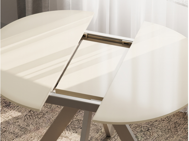Кухонный стол Амадора Бежевый лакобель / Шампань, металл Раздвижной