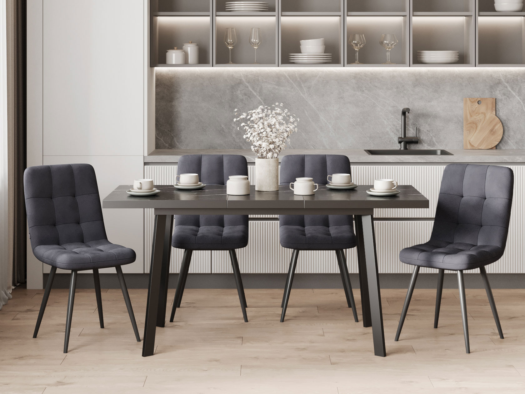 Кухонный стол Бернс дополнит пространство обеденной зоны в стиле лофт. Удобный механизм трансформации поможет быстро организовать дополнительные посадочные места. Прочные металлические опоры обеспечат надежность и устойчивость на любой поверхности.