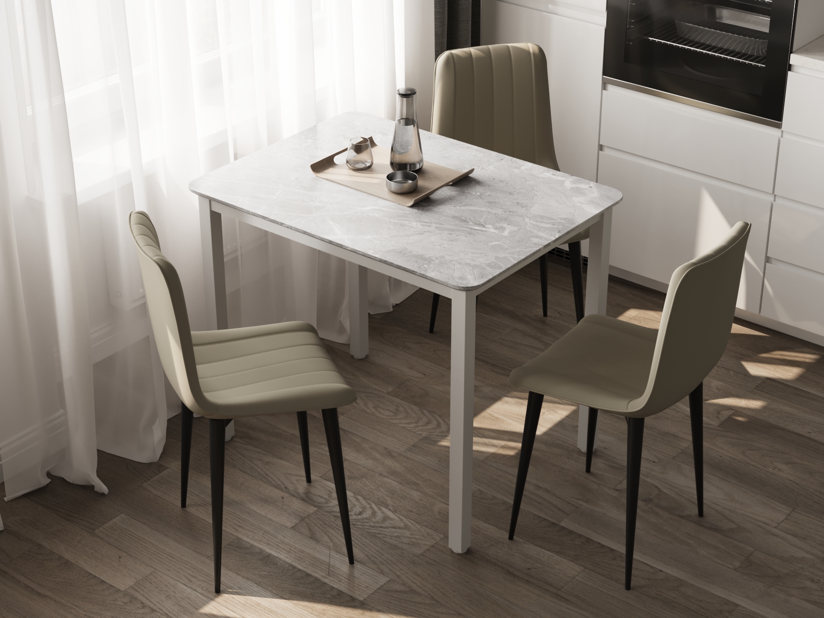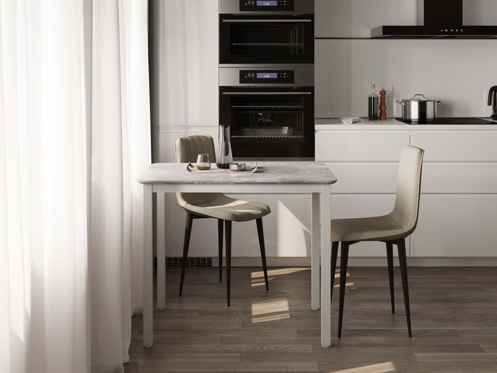 Кухонный стол Блум Серый, керамогранит / Белый, металл