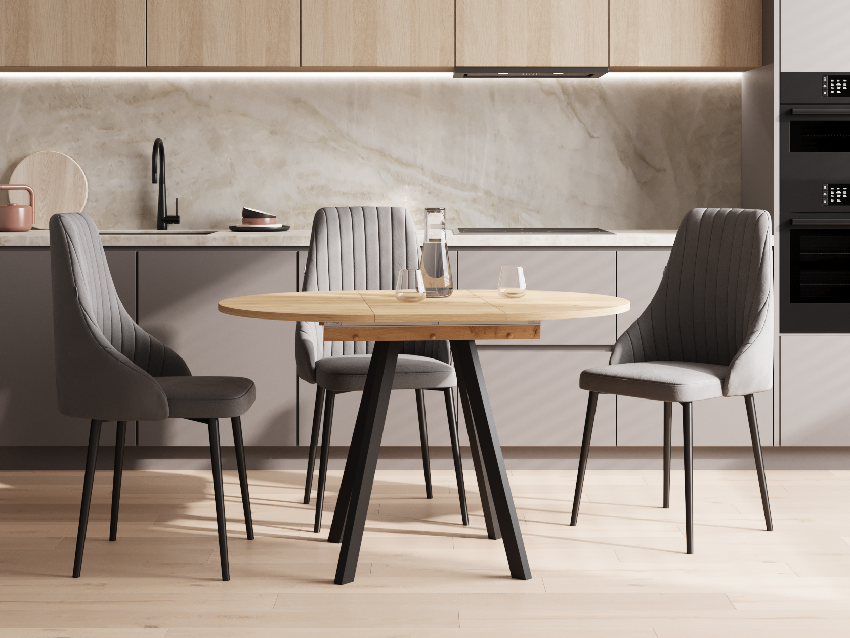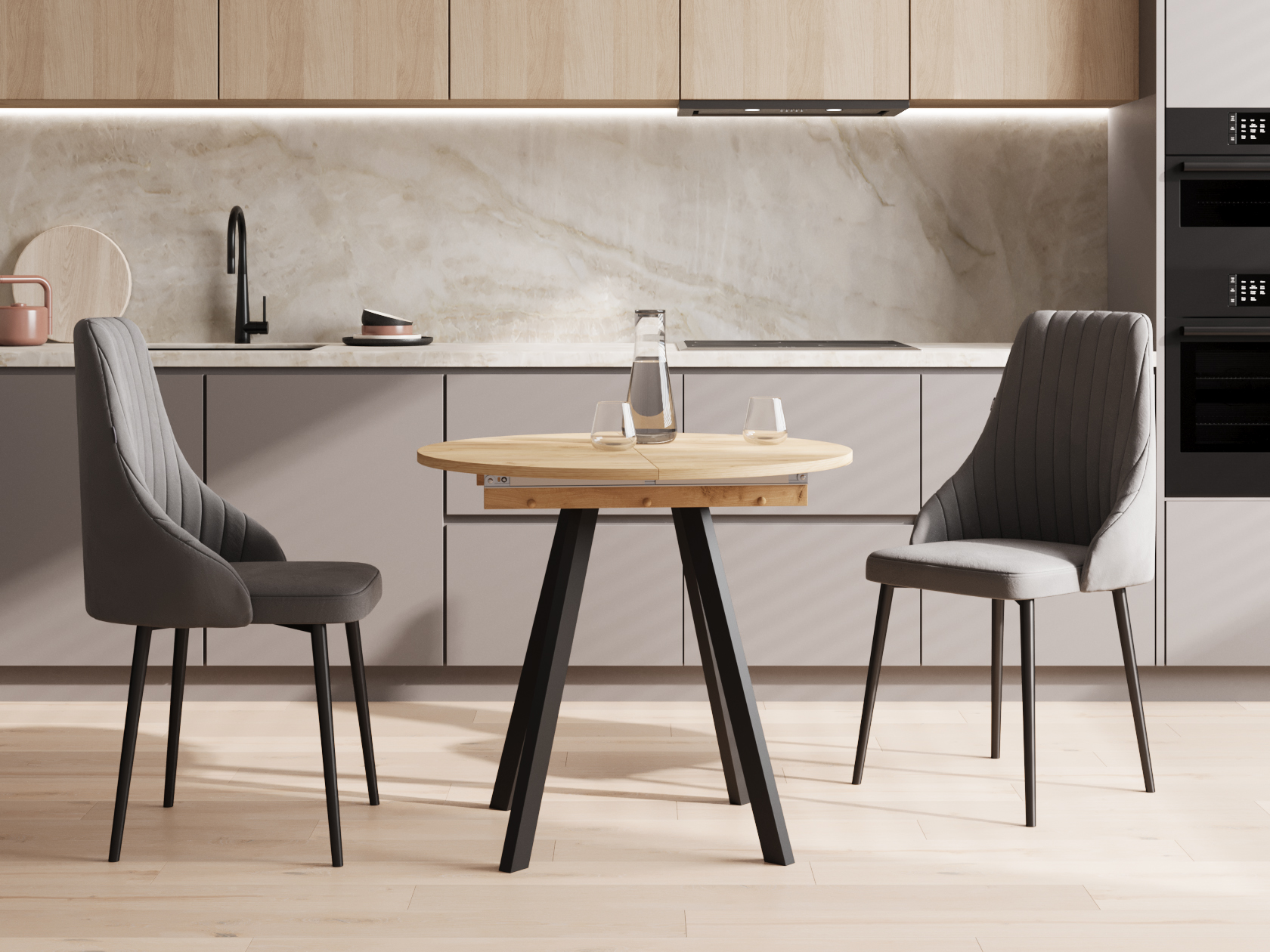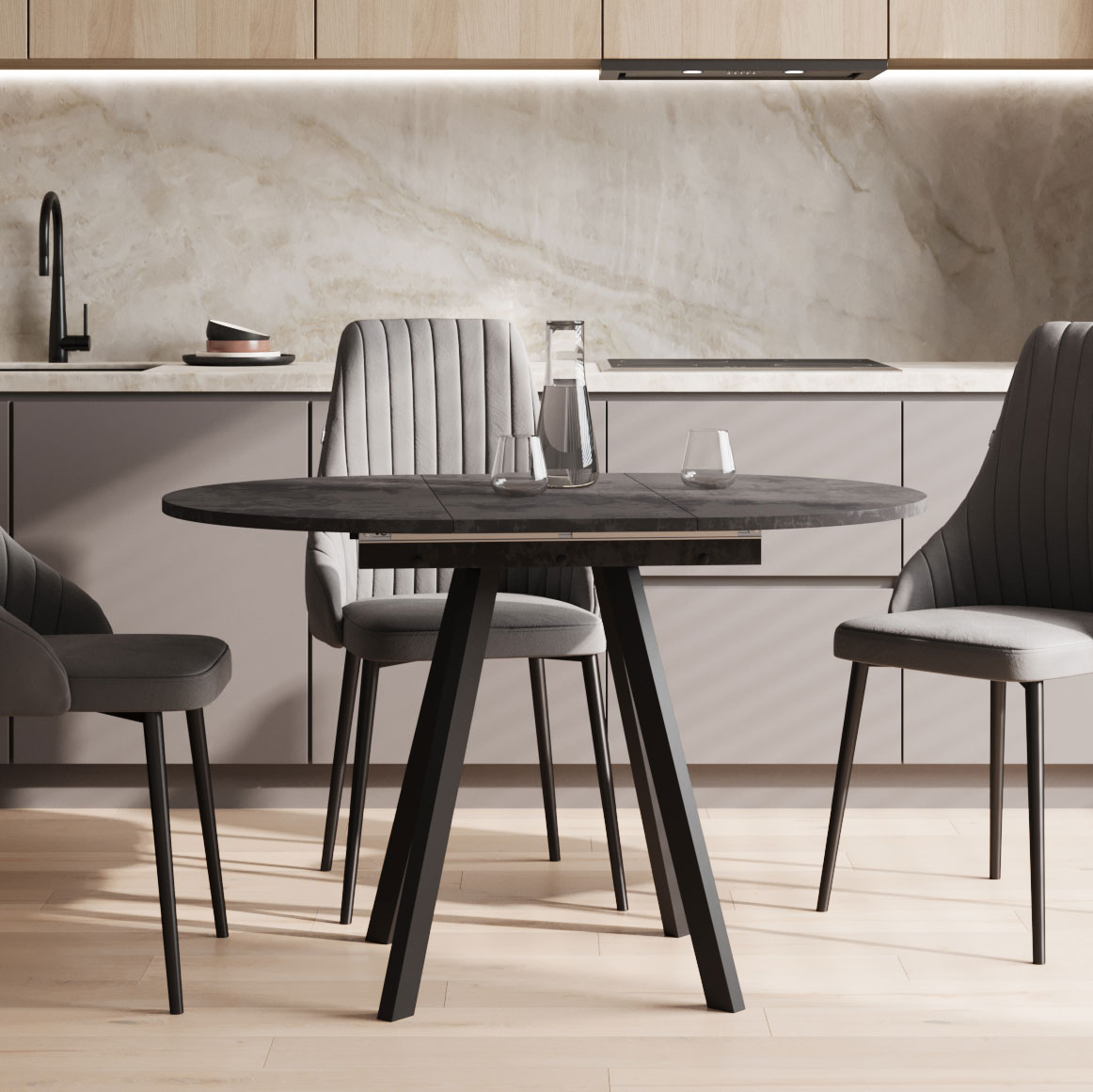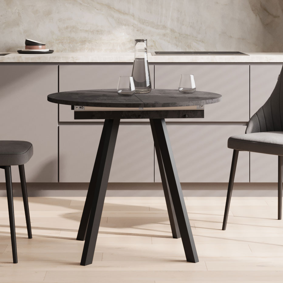 Лаконичный кухонный стол Портер украсит любой современный интерьер. Конусовидное основание из прочных металлических опор и круглая столешница создают элегантный силуэт. Поверхность легко и быстро раскладывается благодаря торцевому механизму.