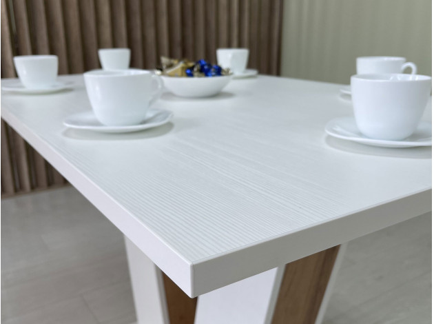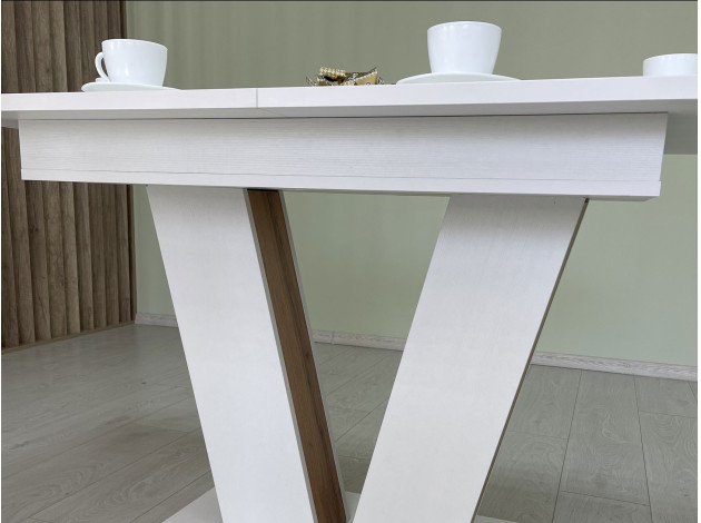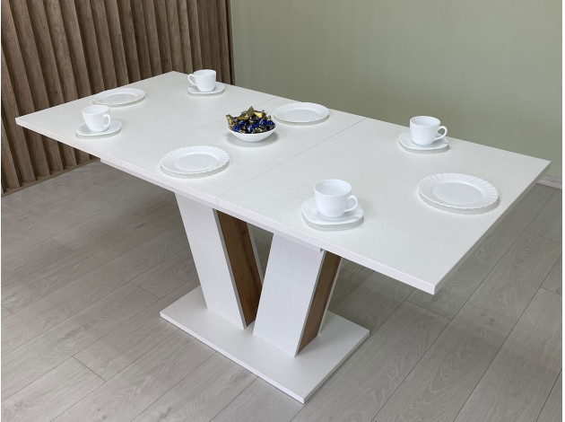 Кухонный стол Эспен — стильная основа обеденной зоны в современном исполнении. Массивная опора с декоративными вставками обеспечивает прочность и надежность конструкции. Стол оснащен специальным механизмом, благодаря которому можно быстро увеличить количество посадочных мест.