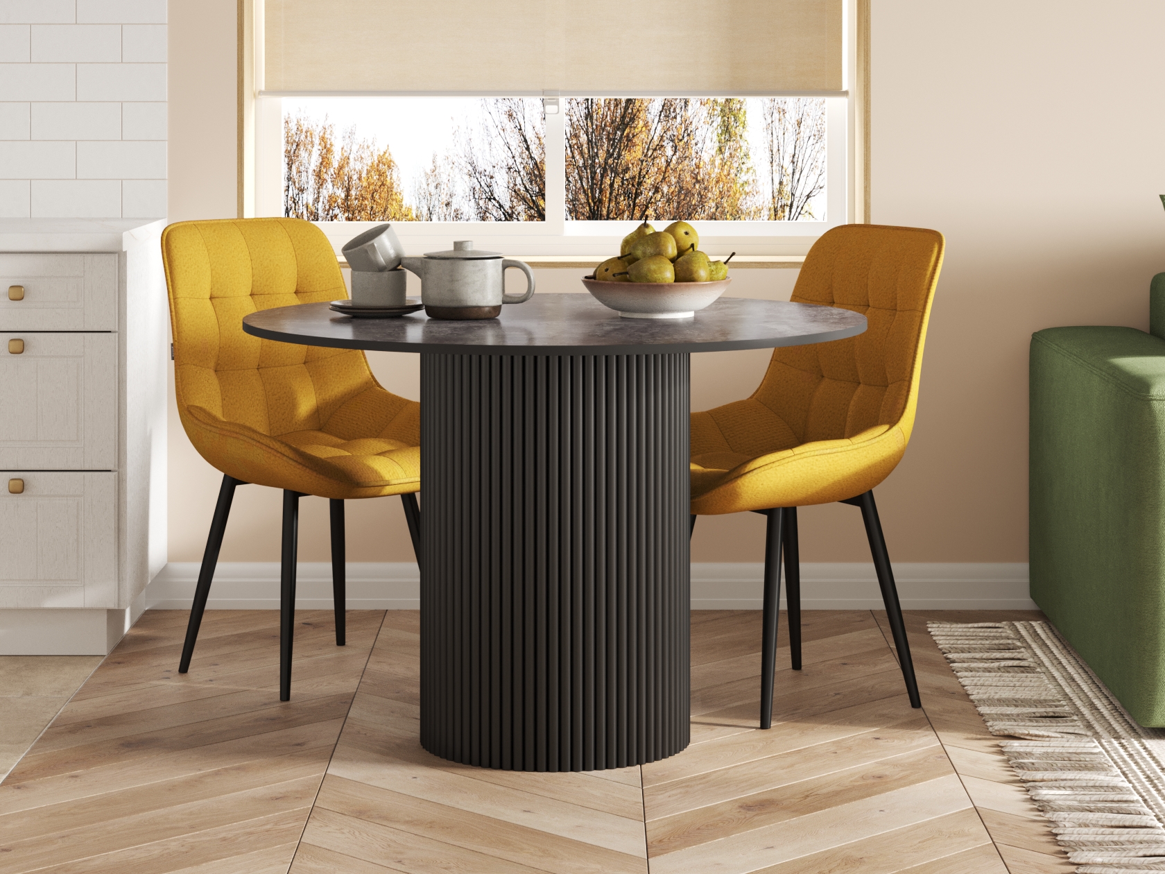 Кухонный стол Гарет Цемент темный, ЛДСП / Черный, металл