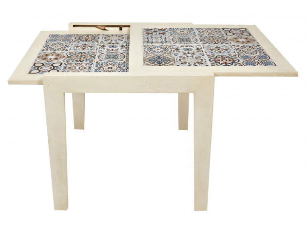 Кухонный стол Касабланка станет изюминкой интерьера благодаря столешнице, декорированной плиткой с марокканскими мотивами. Практичная особенность модели — возможность вдвое увеличить поверхность стола за счет раскладного механизма, что позволит с комфортом рассадить гостей.
