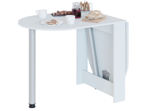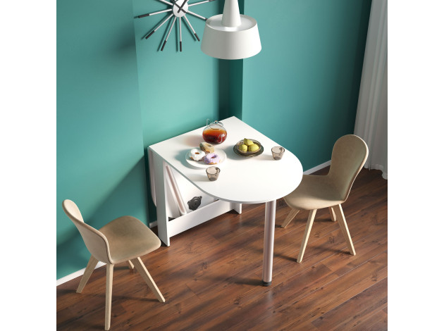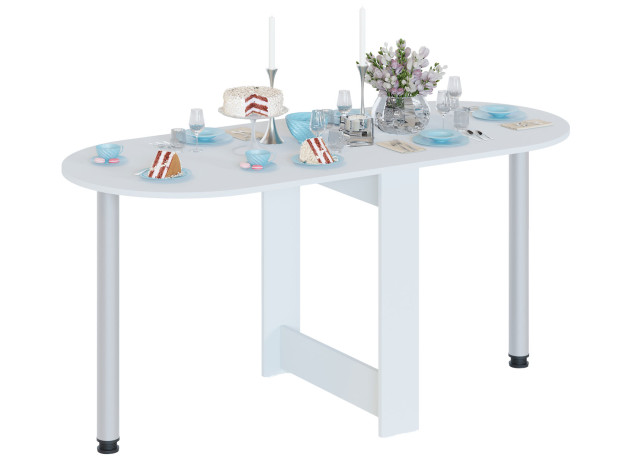 Раскладной стол Олимпио в собранном виде очень компактен и позволит сэкономить пространство, а в разложенном — с удобством разместить до шести человек. Дополнительная опора хранится в специальной нише в основании стола. Скругленные углы столешницы обезопасят от непредвиденных травм. Благодаря регулируемым опорам можно разместить модель даже на полу с неровностями.