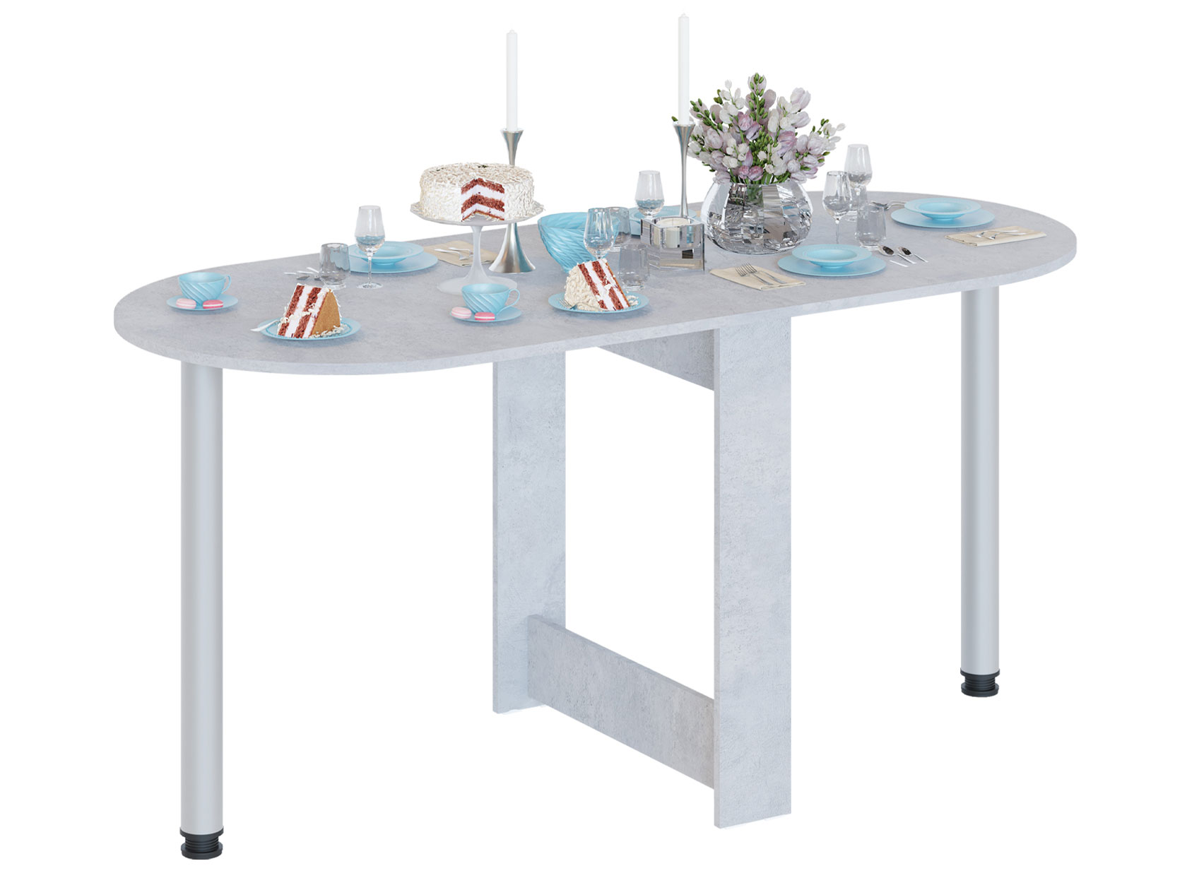 Раскладной стол Олимпио в собранном виде очень компактен и позволит сэкономить пространство, а в разложенном — с удобством разместить до шести человек. Дополнительная опора хранится в специальной нише в основании стола. Скругленные углы столешницы обезопасят от непредвиденных травм. Благодаря регулируемым опорам можно разместить модель даже на полу с неровностями.