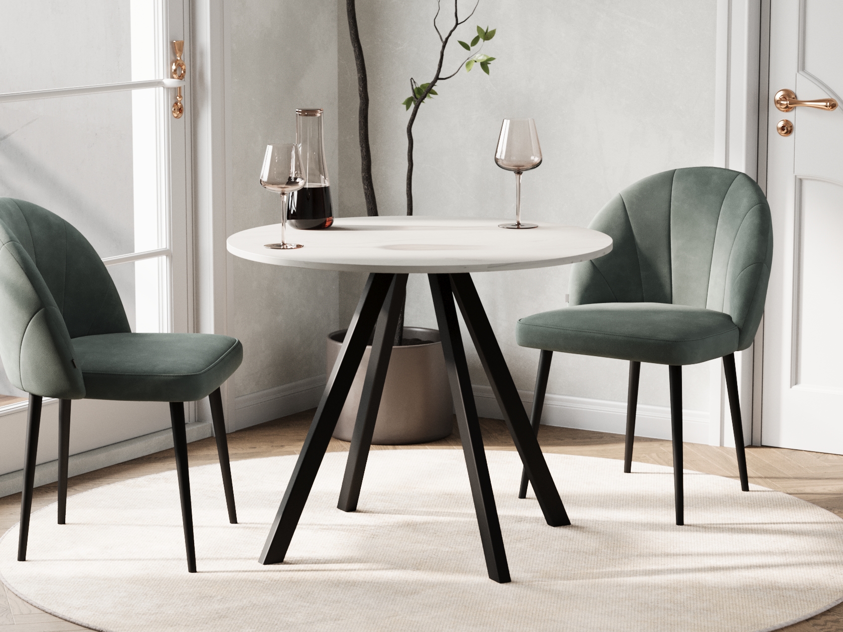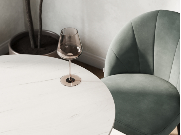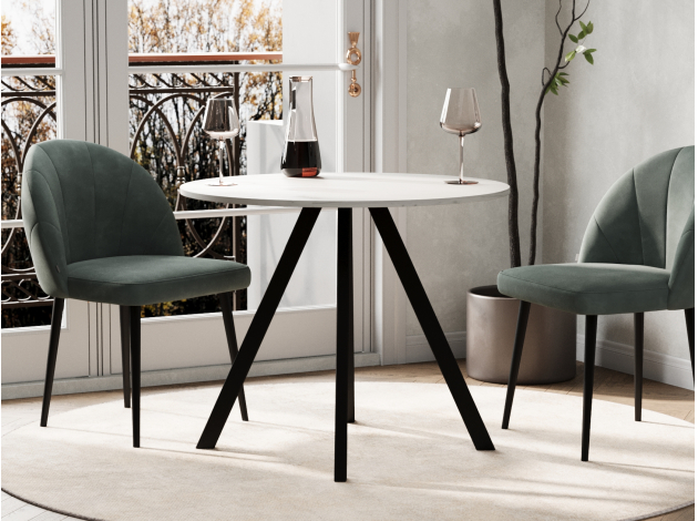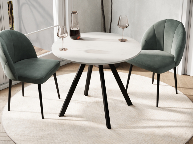 Сочетание светлой, почти молочной столешницы и глубоких матово-черных ножек — это именно то, что мы хотели. Такой контраст выглядит невероятно стильно, современно и динамично. Светлая поверхность зрительно добавляет пространству воздуха и света, а черные ножки придают столу графичную четкость и «ставят» его в интерьере. Получился очень выразительный акцент, который отлично сочетается и с серой кухней, и светлыми стенами. Дизайн одновременно минималистичный и очень эффектный.