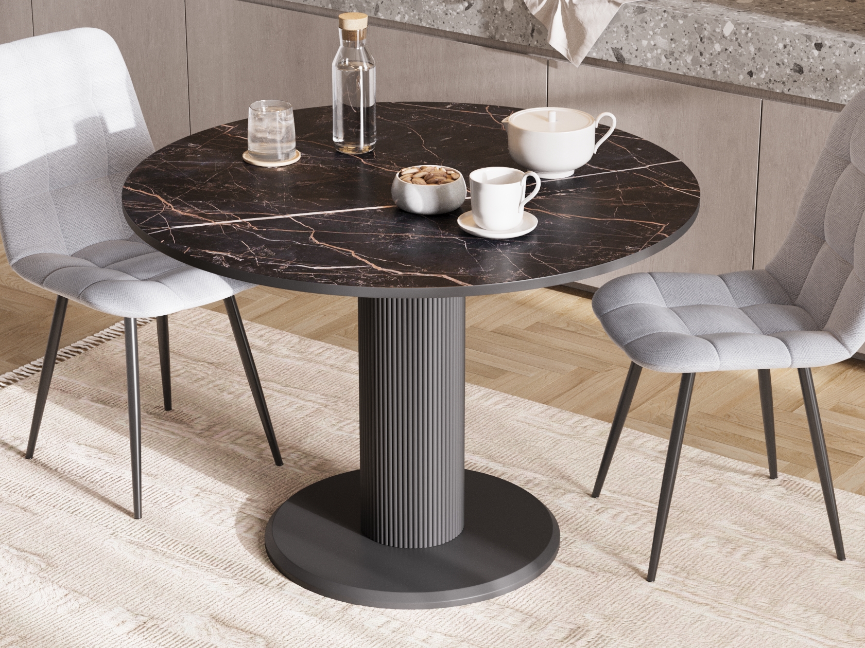Кухонный стол Роберт Черный мрамор, ЛДСП / Черный, металл