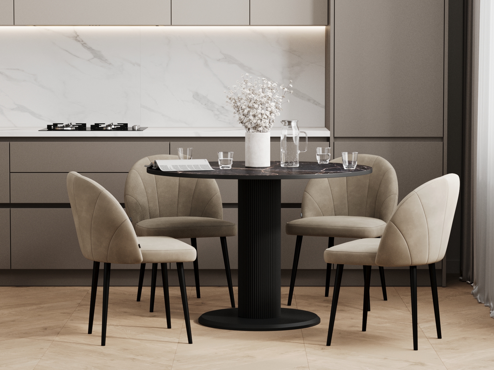 • Кухонный стол Роберт — воплощение современных мебельных трендов. Плавные линии дублируются в дизайне основания и форме столешницы. Просторная поверхность выручит во время прихода гостей и пригодится для сервировки большого семейного ужина. Эффектное подстолье — изюминка модели: оно удерживает конструкцию и подчеркивает утонченный стиль.