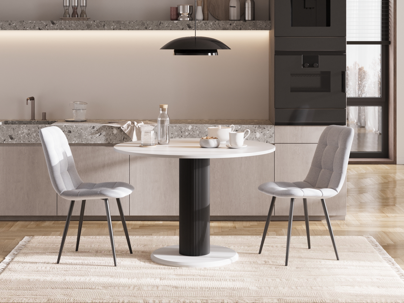 Кухонный стол Роберт — воплощение современных мебельных трендов. Плавные линии дублируются в дизайне основания и форме столешницы. Просторная поверхность выручит во время прихода гостей и пригодится для сервировки большого семейного ужина. Эффектное подстолье — изюминка модели: оно удерживает конструкцию и подчеркивает утонченный стиль.
