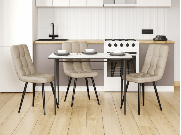 Кухонный стол Саймон Белый мрамор / Черный, металл