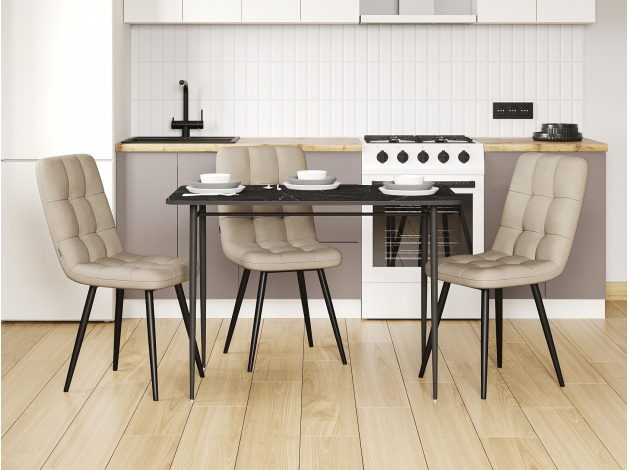 Кухонный стол Саймон Черный мрамор / Черный, металл