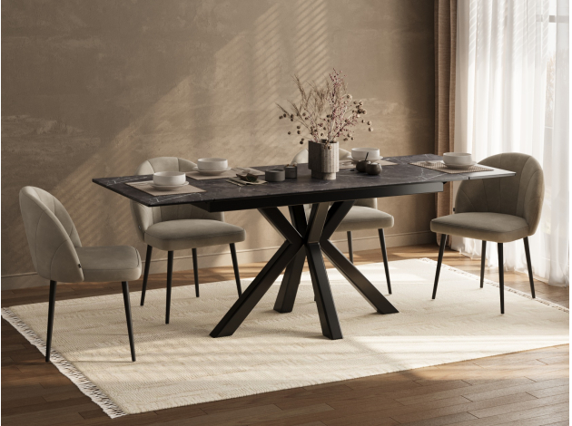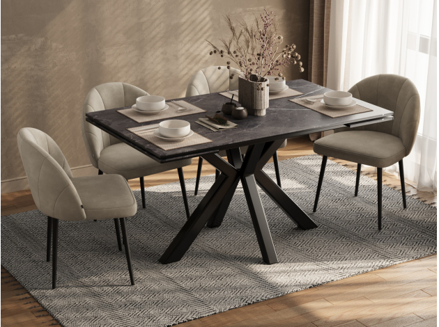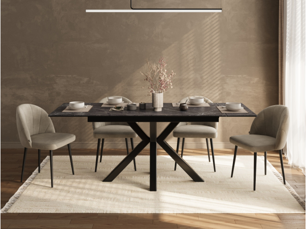 Кухонный стол Стенли Черный мрамор / Черный, металл 140 см
