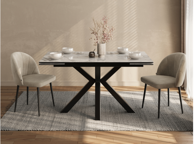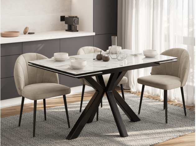 Кухонный стол Стенли Белый мрамор / Черный, металл 120 см