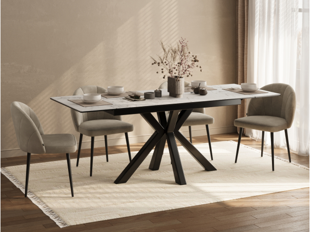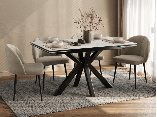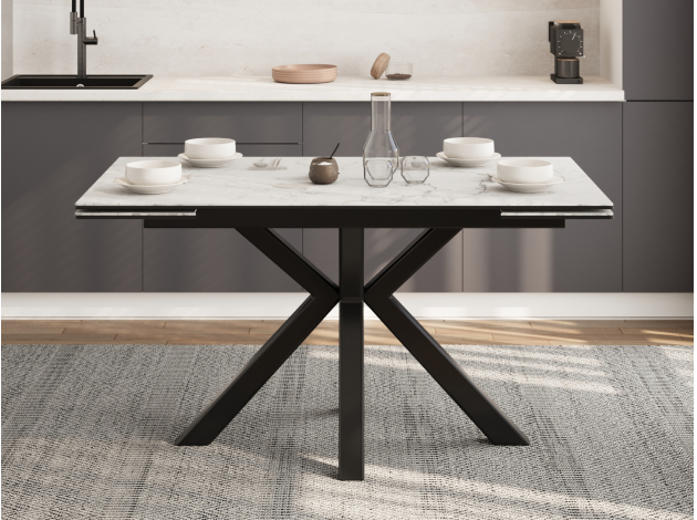 Кухонный стол Стенли Белый мрамор / Черный матовый, металл 120 см