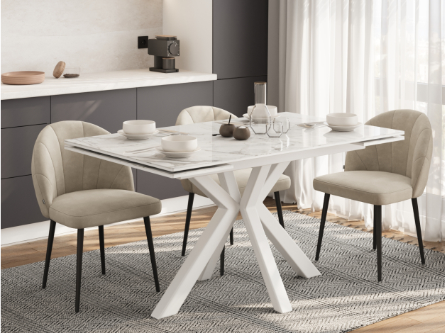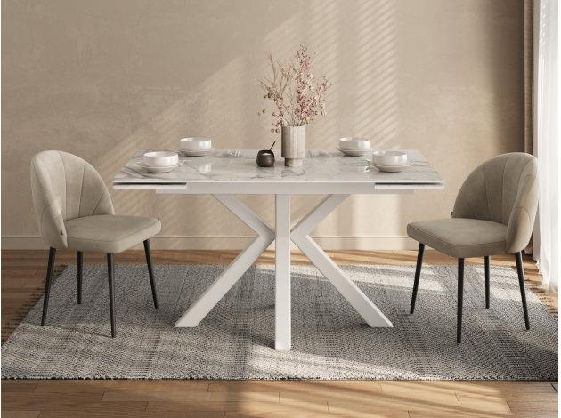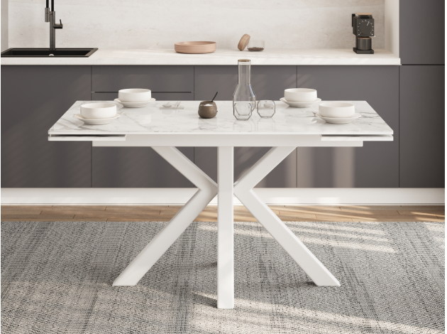 Кухонный стол Стенли Белый мрамор / Белый, металл 120 см