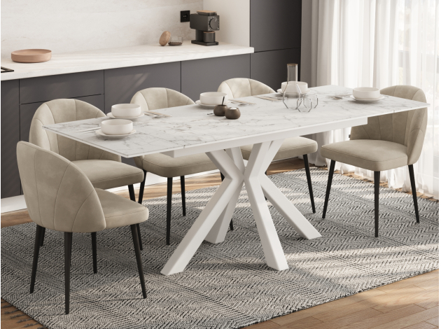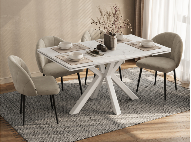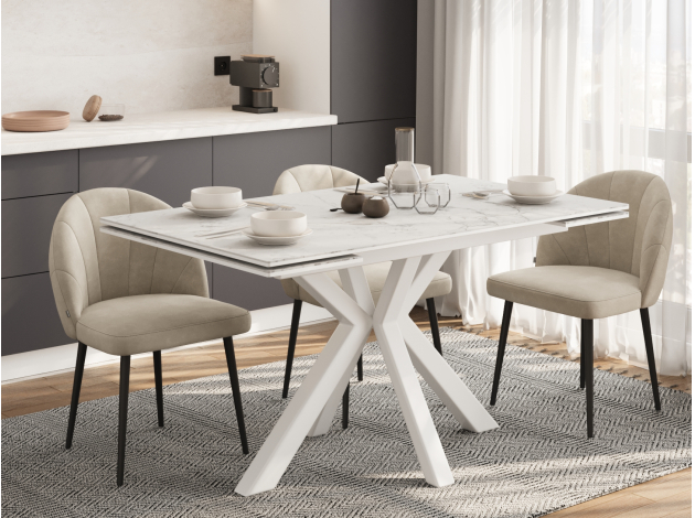 Кухонный стол Стенли Белый мрамор / Белый матовый, металл 120 см