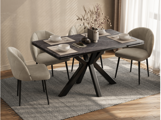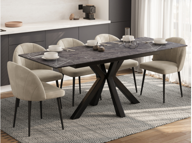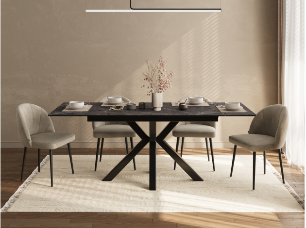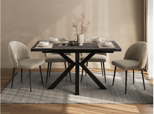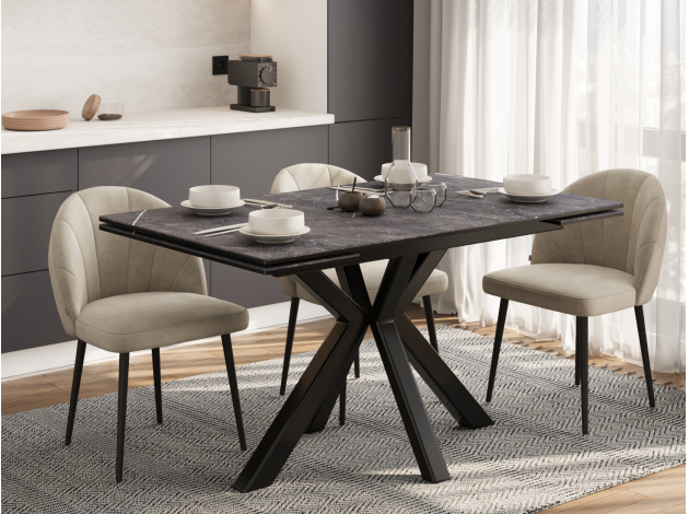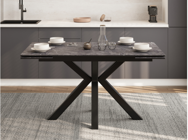 Кухонный стол Стенли Черный мрамор / Черный матовый, металл 140 см