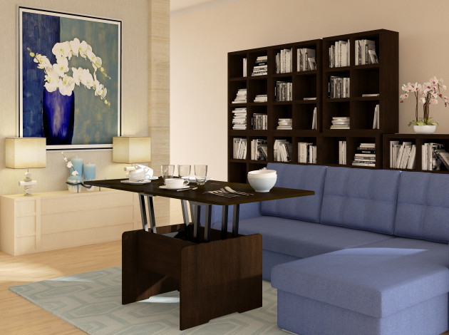 Современный стол-трансформер Альтер станет не только стильным дополнением интерьера, но и полезной частью гостиной или квартиры-студии. Стол экономит пространство и идеально подходит для небольших помещений.