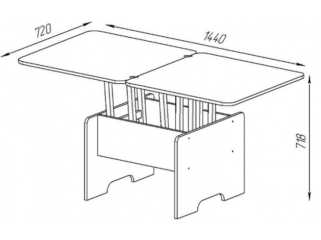 - Габариты стола в разложенном виде (ВхШхГ): 71,8 х 144 х 72 см.