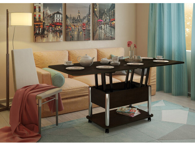 - трансформер — журнальный стол легко и быстро превращается в обеденный стол;