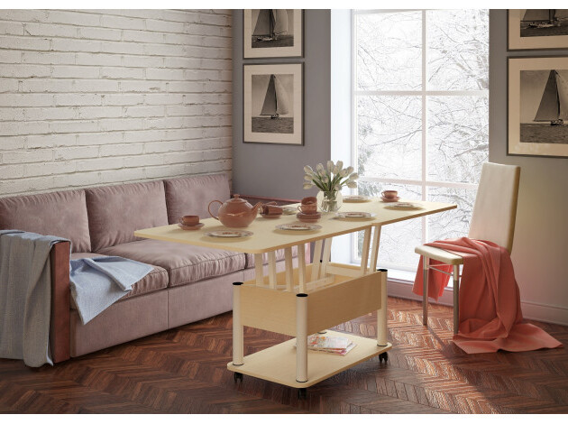 - трансформер — журнальный стол легко и быстро превращается в обеденный стол;