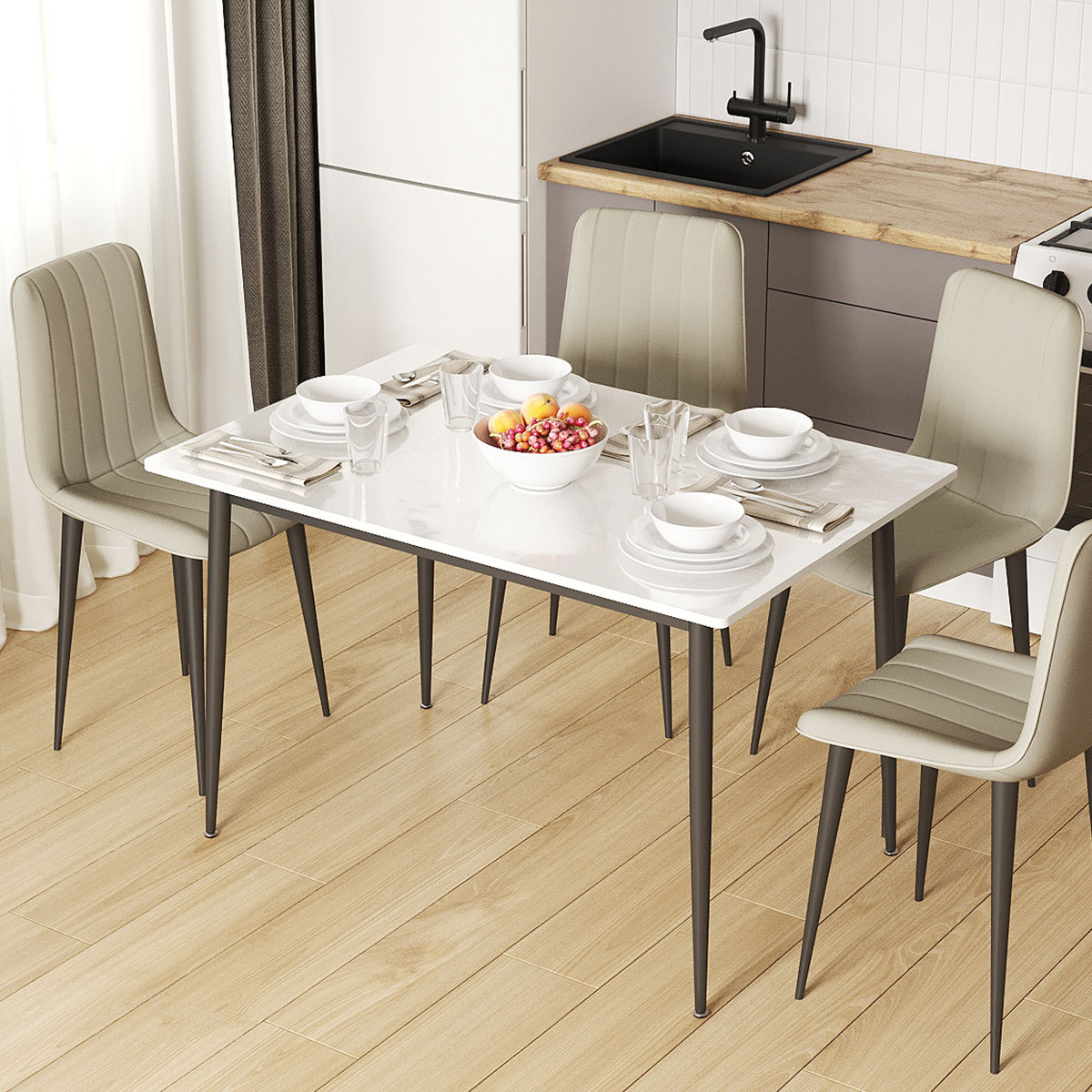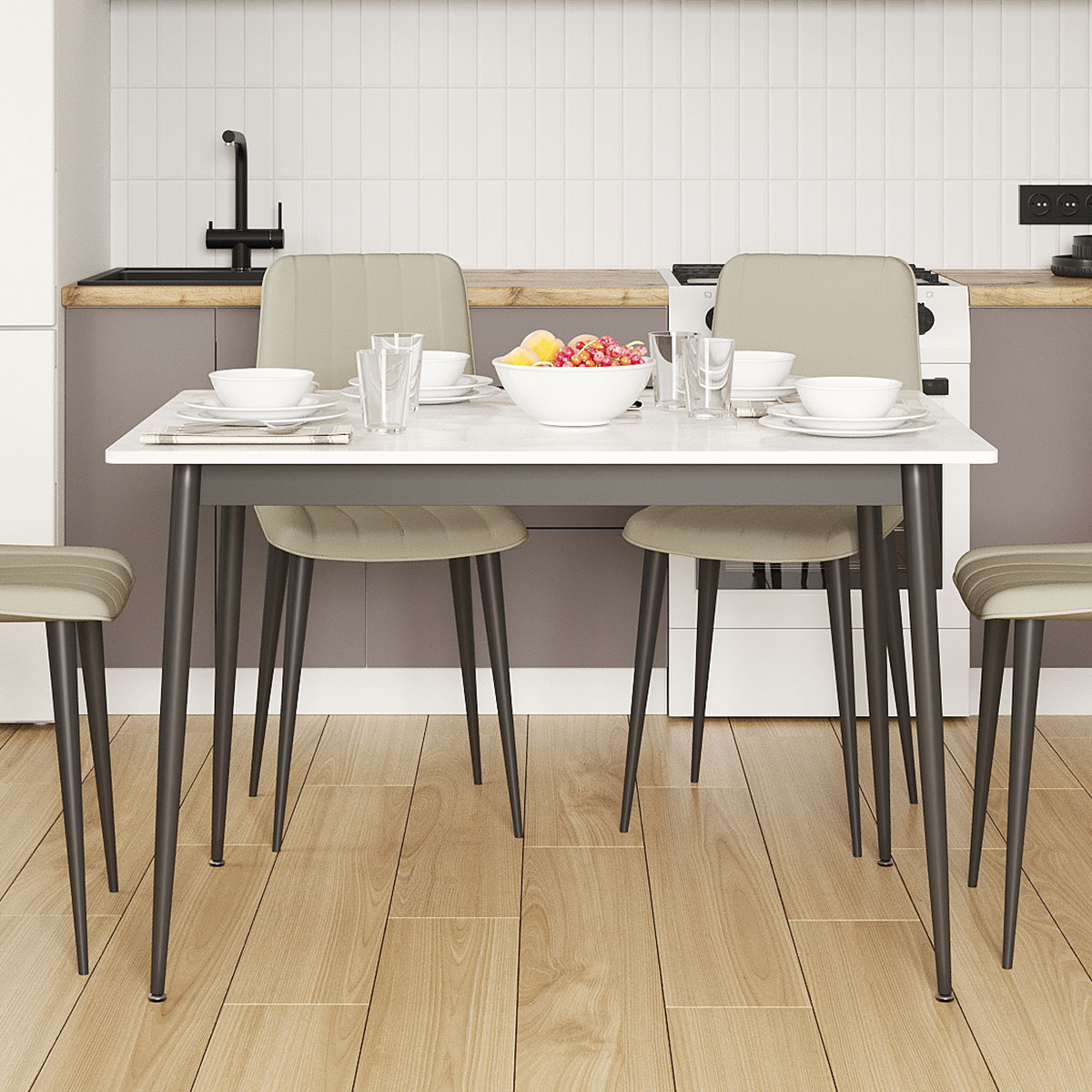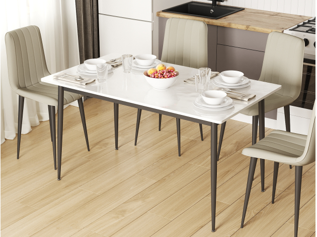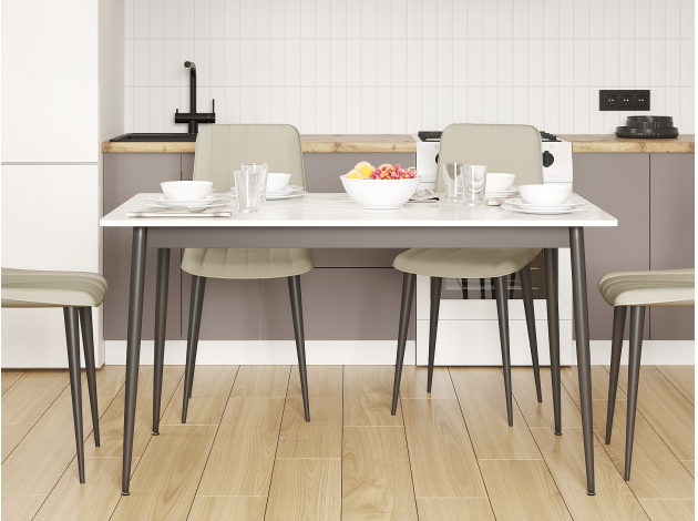 Кухонный стол Вико станет важным дополнением обеденной зоны. Благодаря высоким конусообразным опорам модель смотрится визуально легко и лаконично. Просторная прямоугольная столешница обеспечит достаточно места, чтобы сервировать прием пищи на несколько человек. Практичный материал позволяет быстро удалить загрязнения, а также защищает поверхность от царапин и мелких повреждений.