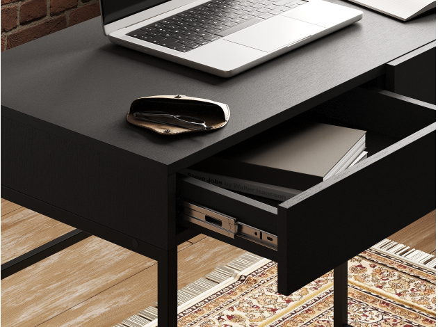 Письменный стол Блогер Миди объединил функциональность и современный дизайн. Лаконичная поверхность обеспечит пространство для компьютера или ноутбука, а металлический каркас добавит конструкции устойчивости и визуальной легкости. Выдвижные ящики открывают быстрый доступ к документам и канцелярским принадлежностям. На задней части столешницы находится вырез для удобного расположения кабелей, что позволяет поддерживать порядок на рабочем месте.