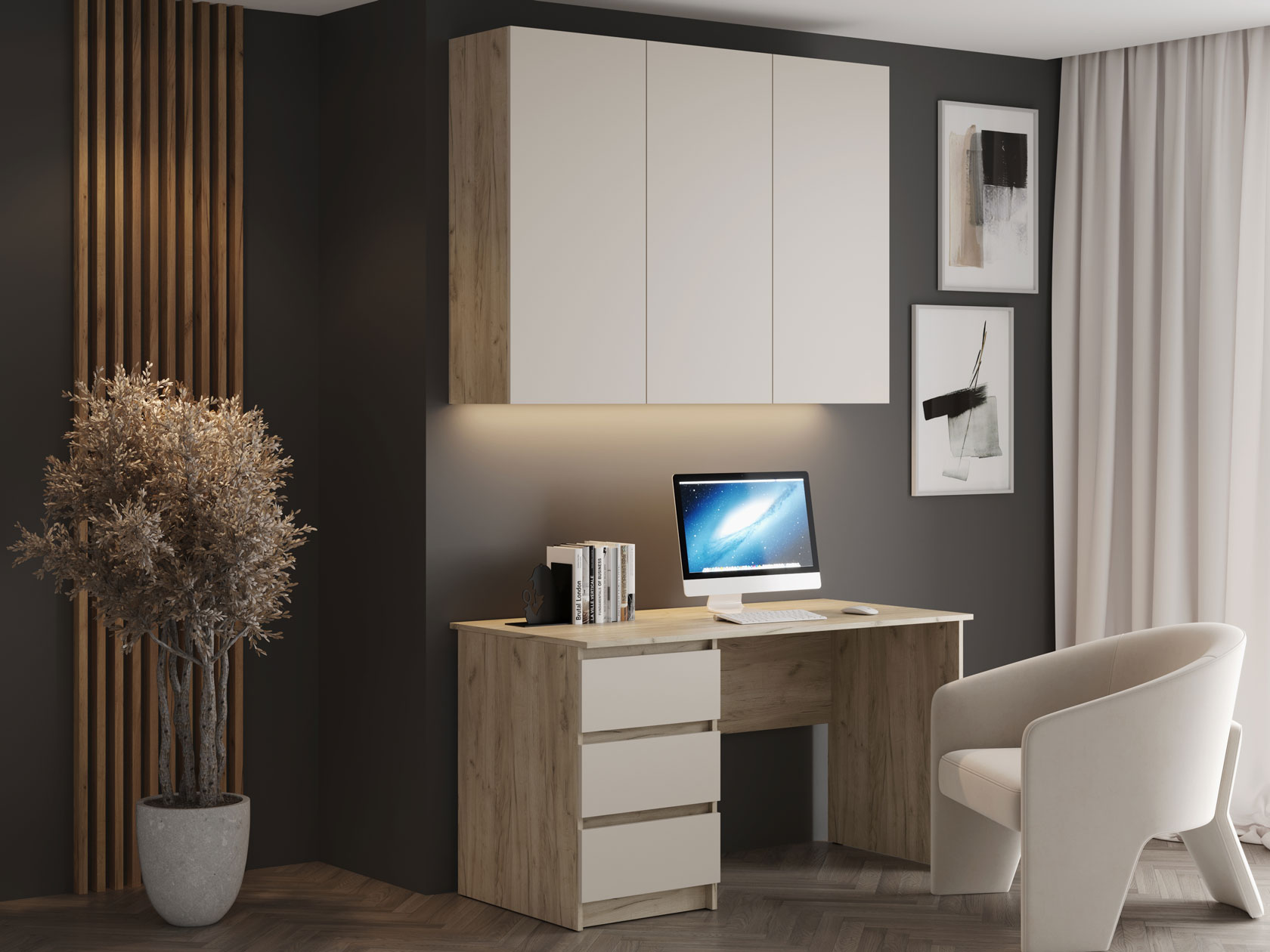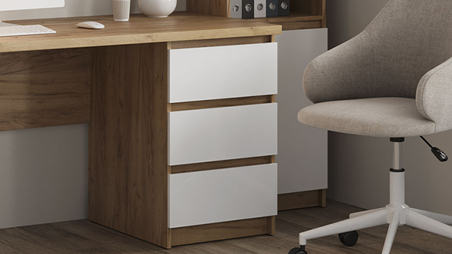 Выдвижные ящики систематизируют хранение самых разных вещей: от документов и учебников до канцелярии и зарядных устройств. Все необходимое находится в быстром доступе, при этом не занимает места на столешнице.