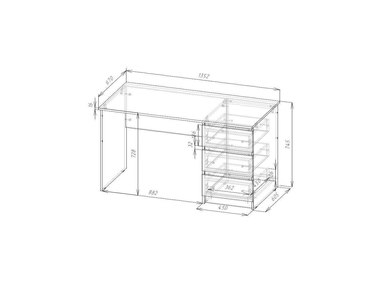 Толщина столешницы: 16 мм.